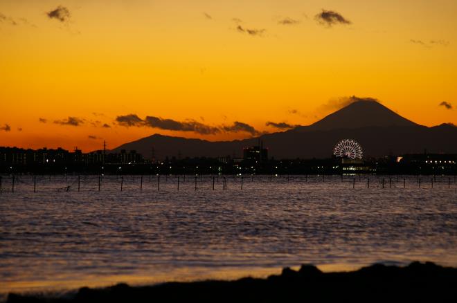 富士山の手前に見えるのは葛西臨海公園の観覧車でしょうかね。
