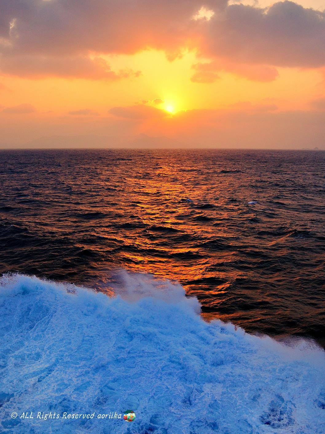 徳之島から奄美大島の洋上で日の入り時間となる。