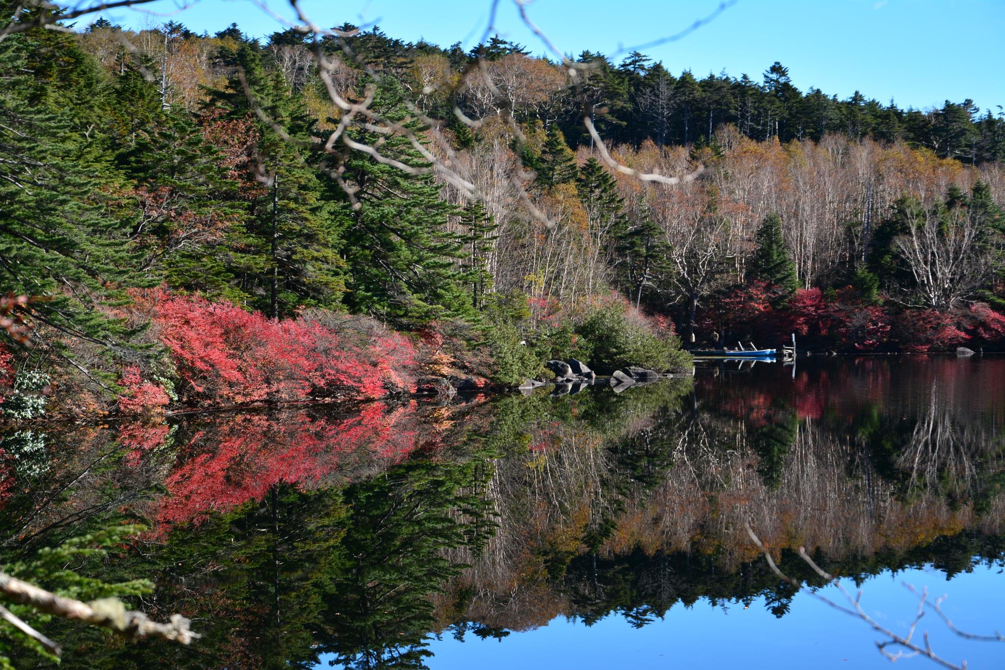 たいがいは岸の方がさざ波が立ってしまうのですがこの日は見事な映り込みでした。絵具で作ったシンメトリー、心理テストのロールシャッハもそんな感じですねぇ。