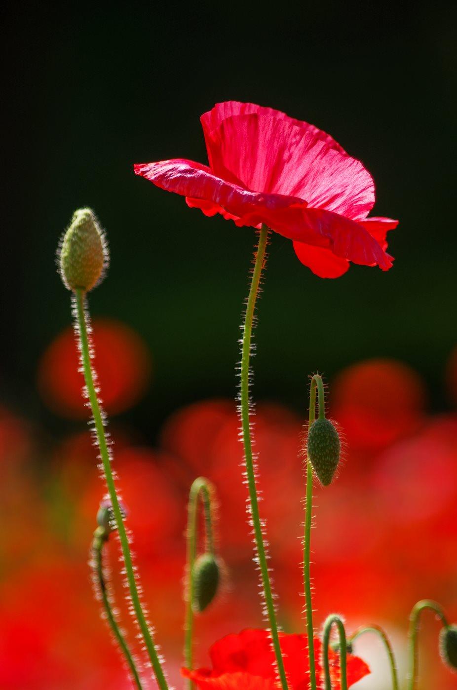 ポピーはいっぱい咲いているところでは綺麗な花を見つけるのが先決です。この時は真ん中付近だったので、下にボケが入りました。そうそう、何事も半分は応用編です。