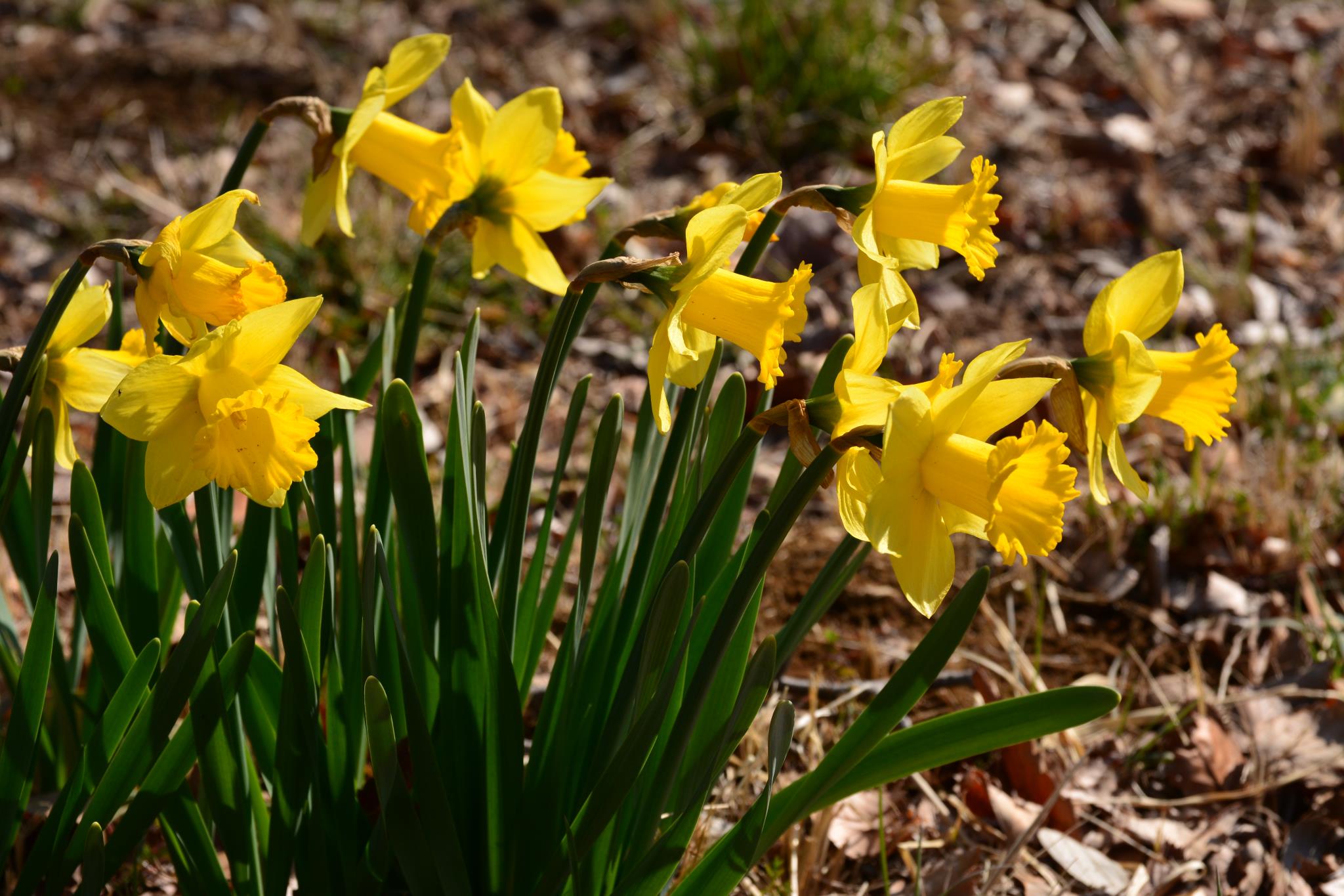 黄色の水仙が揃ってきれいですね。向いているほうが陽が当たる方なのでしょうか。