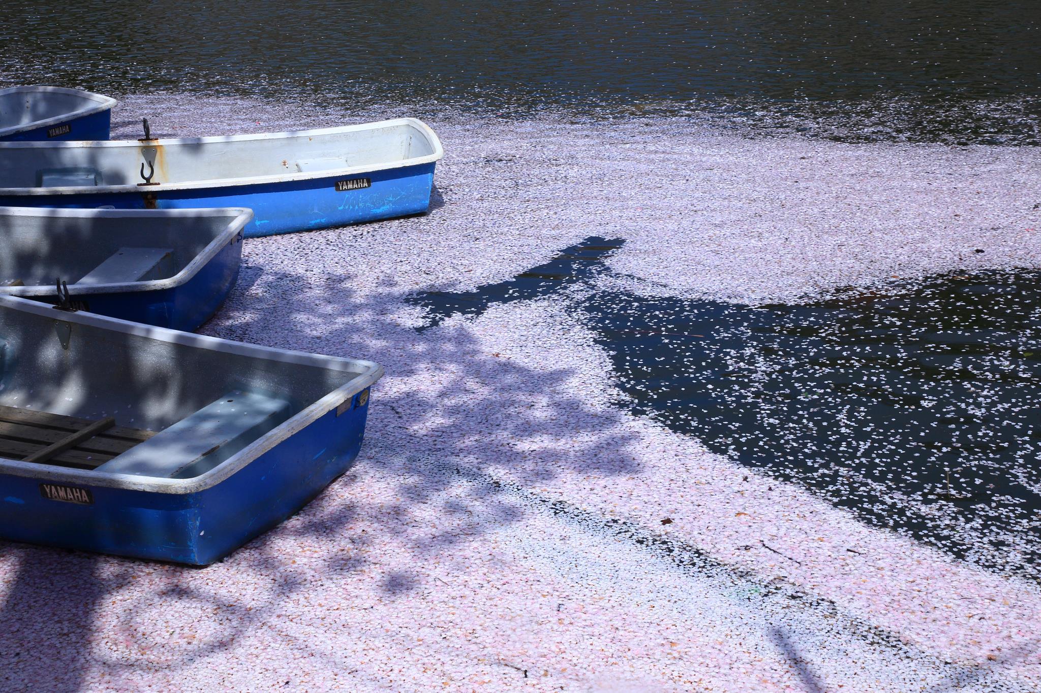 すごい花びらですね。桜は散ってもなお美しい。日本人が愛する花です。このボートに乗って花筏の中を進んでみたいです。