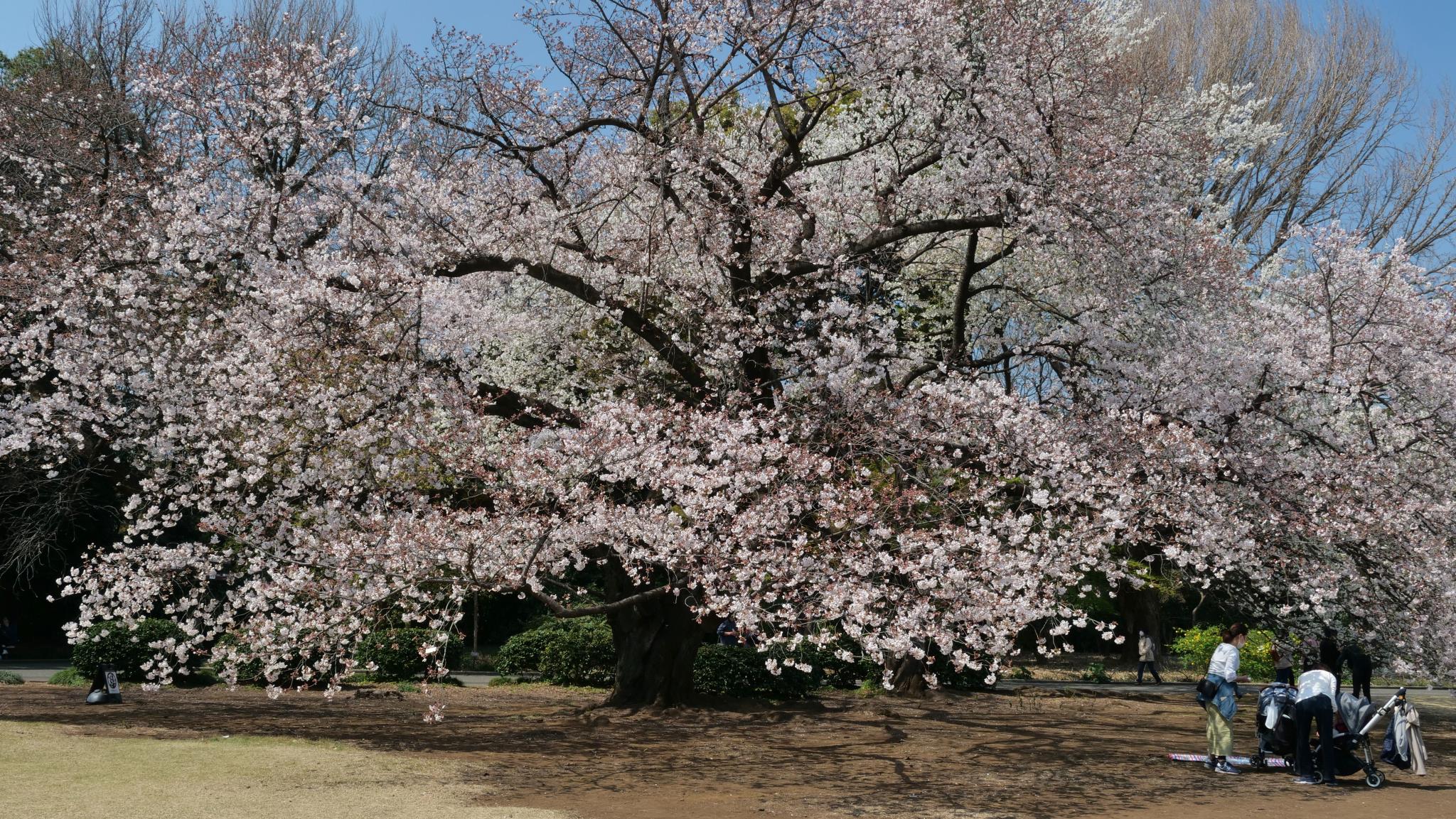 昨年まではこの木の下はビニールシートの花見客で満席ですが、今年はご覧の通りで貴重な写真となりました。