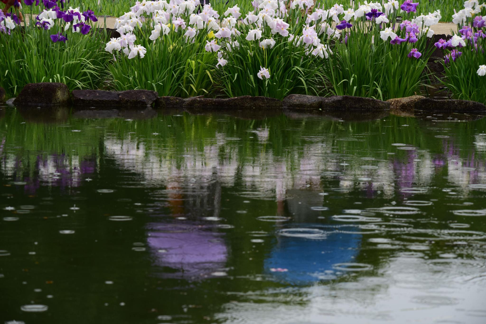 白と紫の花菖蒲の色合いとマッチしています。