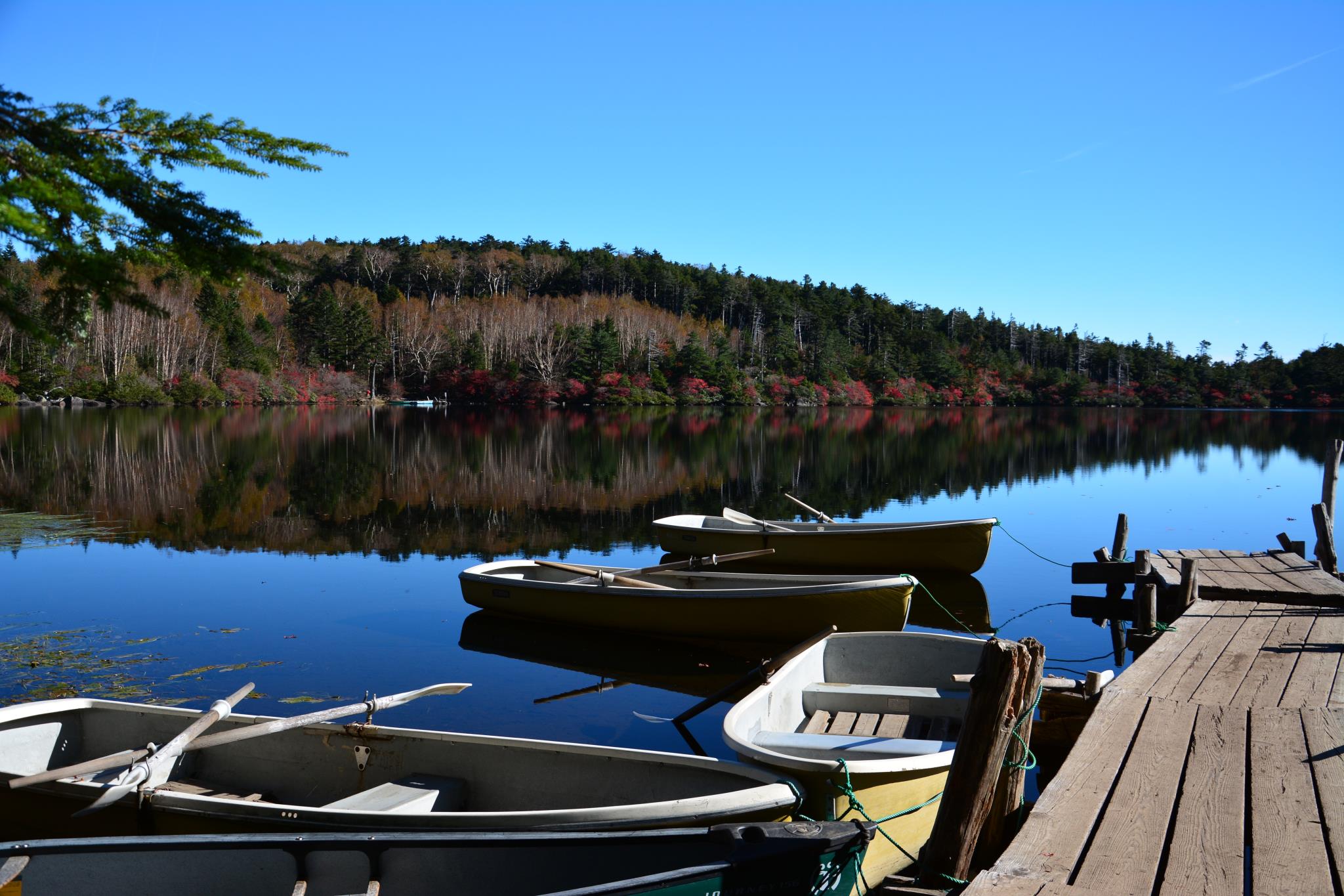 ボート乗り場は2か所あります。こちらは白駒荘の斜め前の乗り場です。日中ですと、ボートに乗る人もいますがこの時間から池の中に漕ぎ出す人はいませんでした。