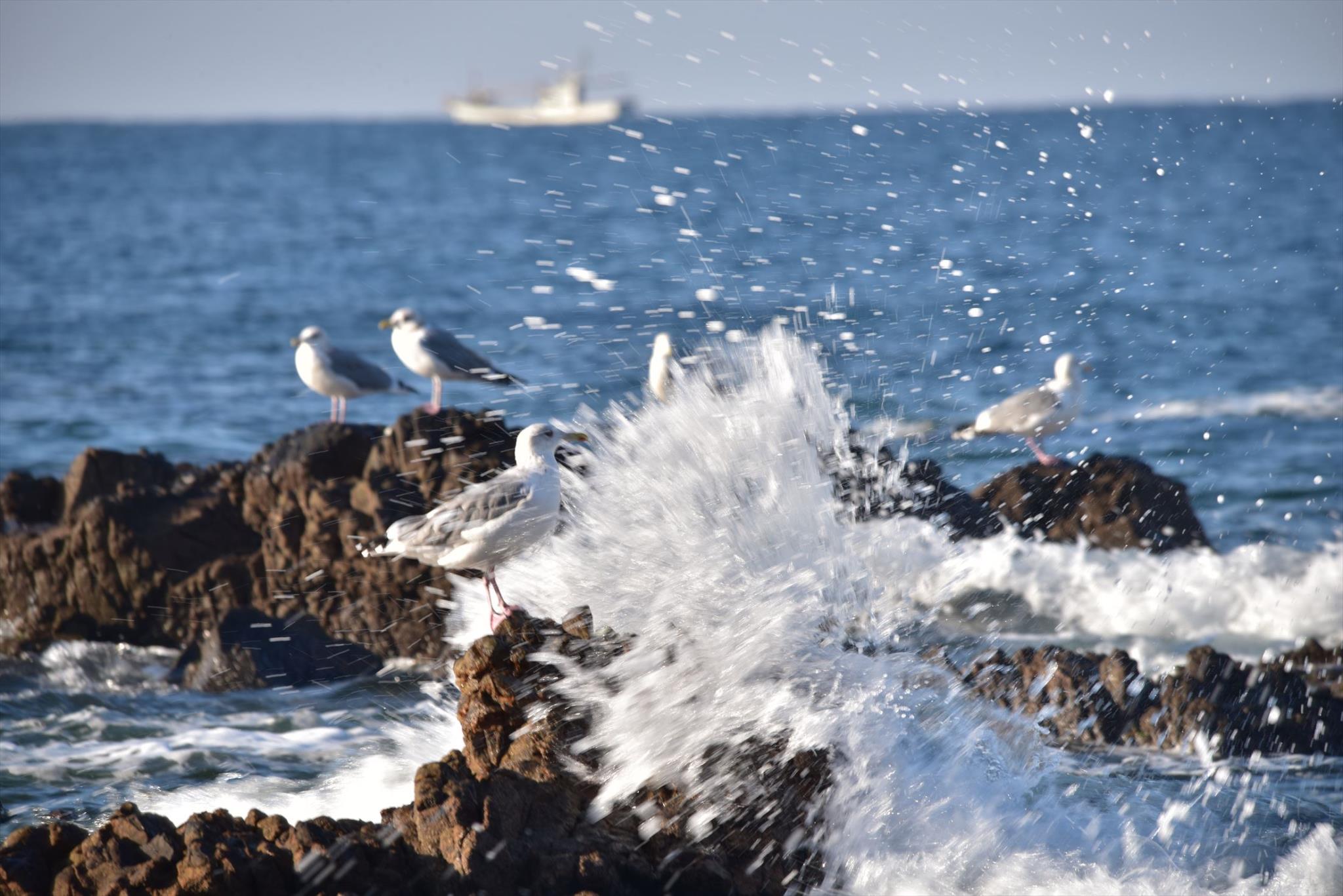 でも、波をかぶった後はやはり岩にしがみつくようにして慌てていました。(笑)