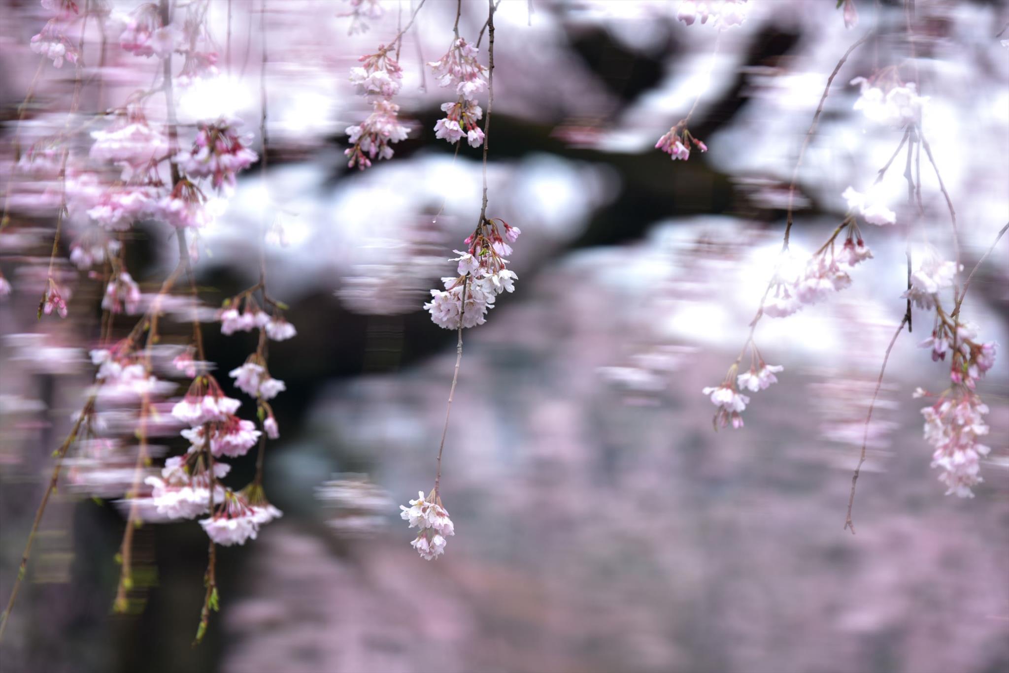 この遊び心いただきますよ バックの選び流れるしだれ桜は美しいですね