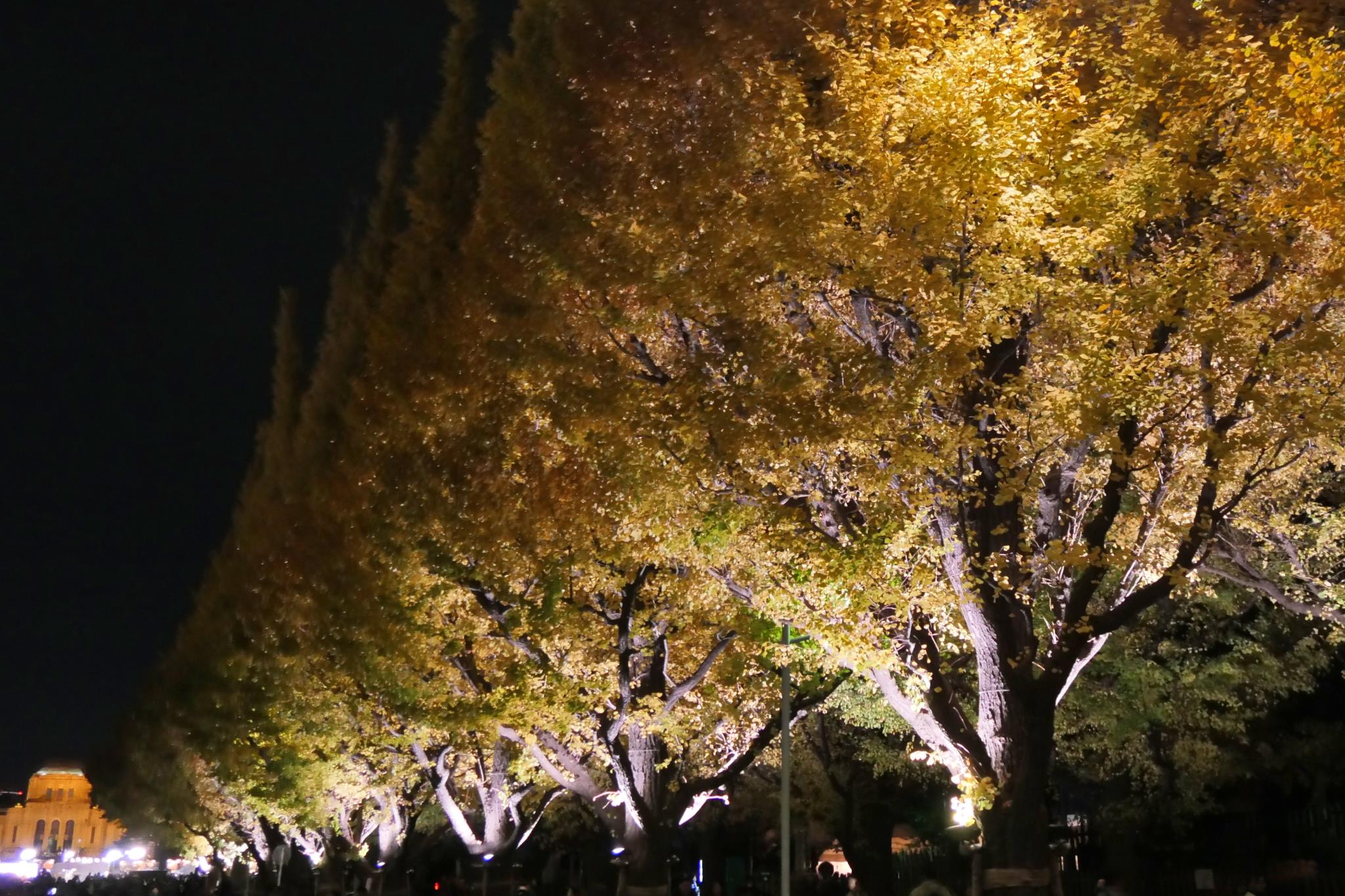 先の絵画館のライトアップが目を引き付けます。
