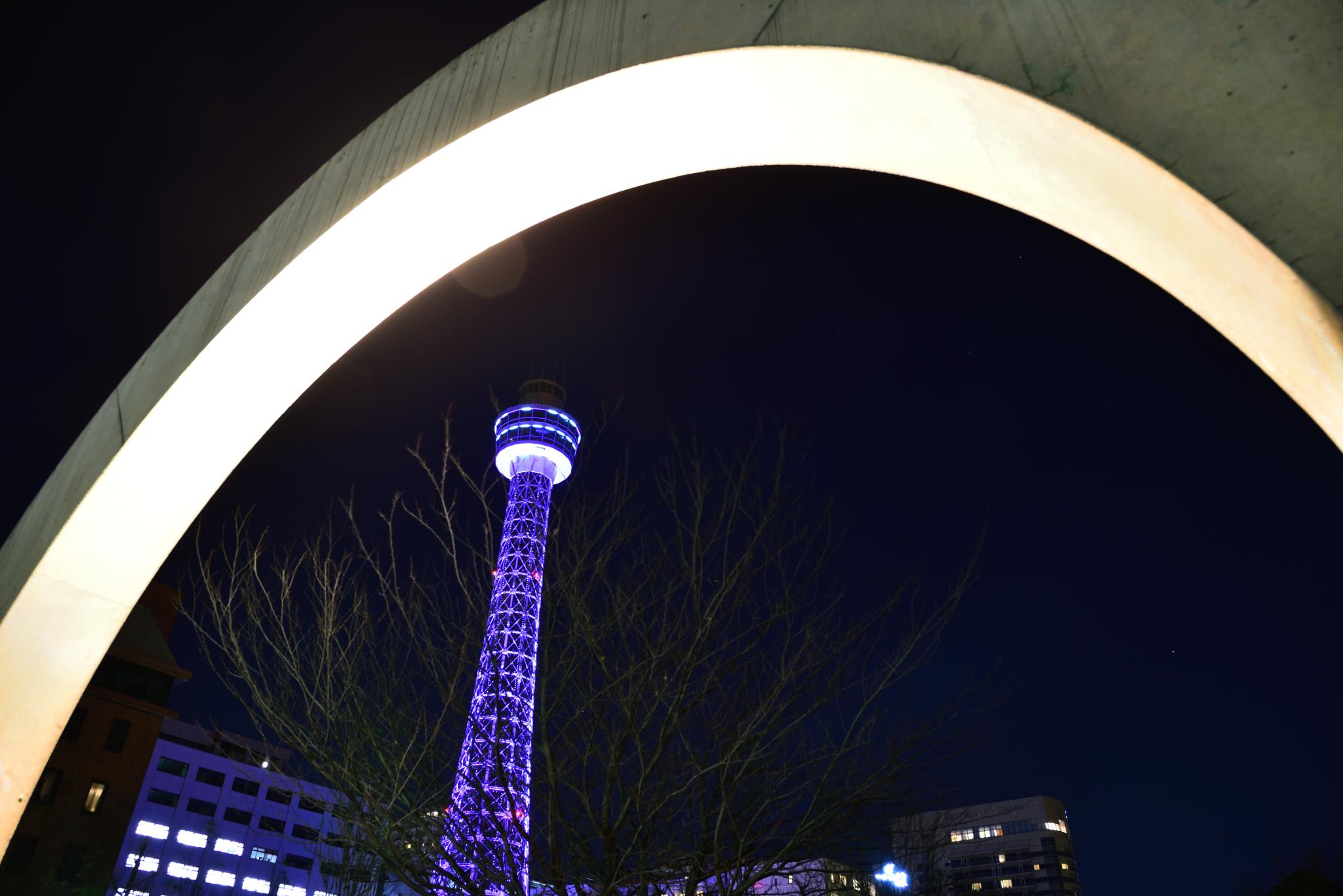 マリンタワーをどう撮るか考えていましたら、このアーチ型の構造物に出会いました。