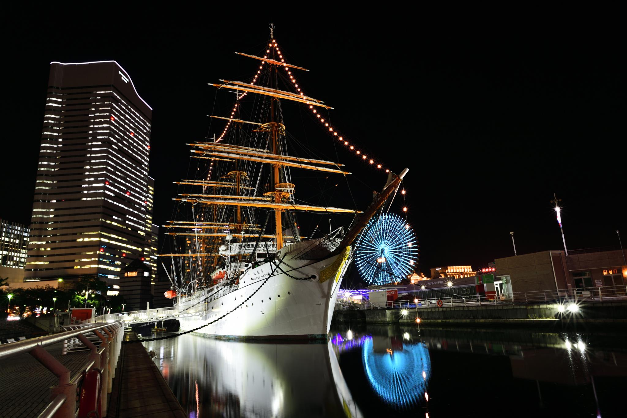 昼間より、ライトアップされた日本丸の方が魅力的です。