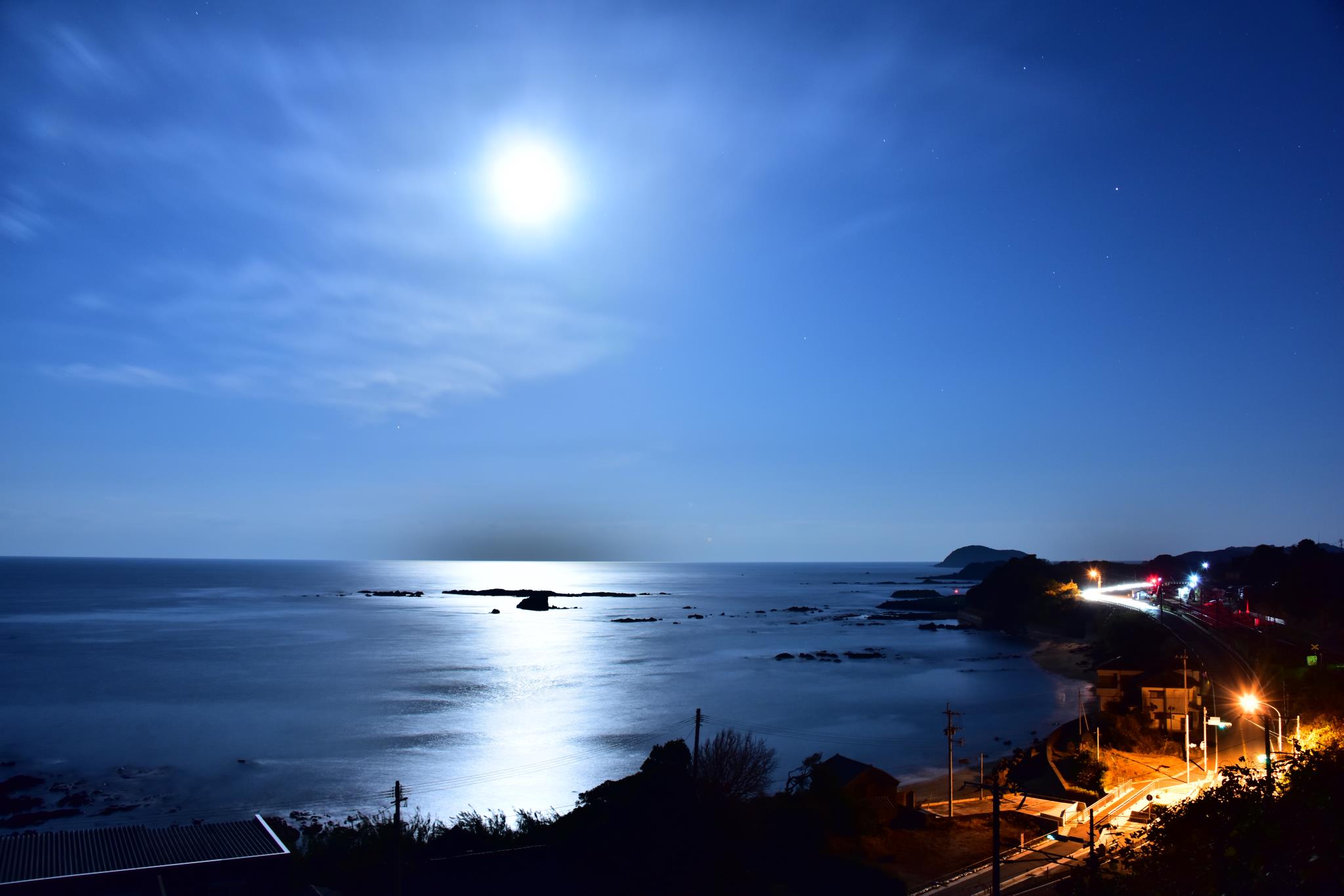 この月が鳥居のある瀬にかかるのを狙おうと思いましたがこの後、水平線上に雲が出始め途中で月が見えなくなりました。