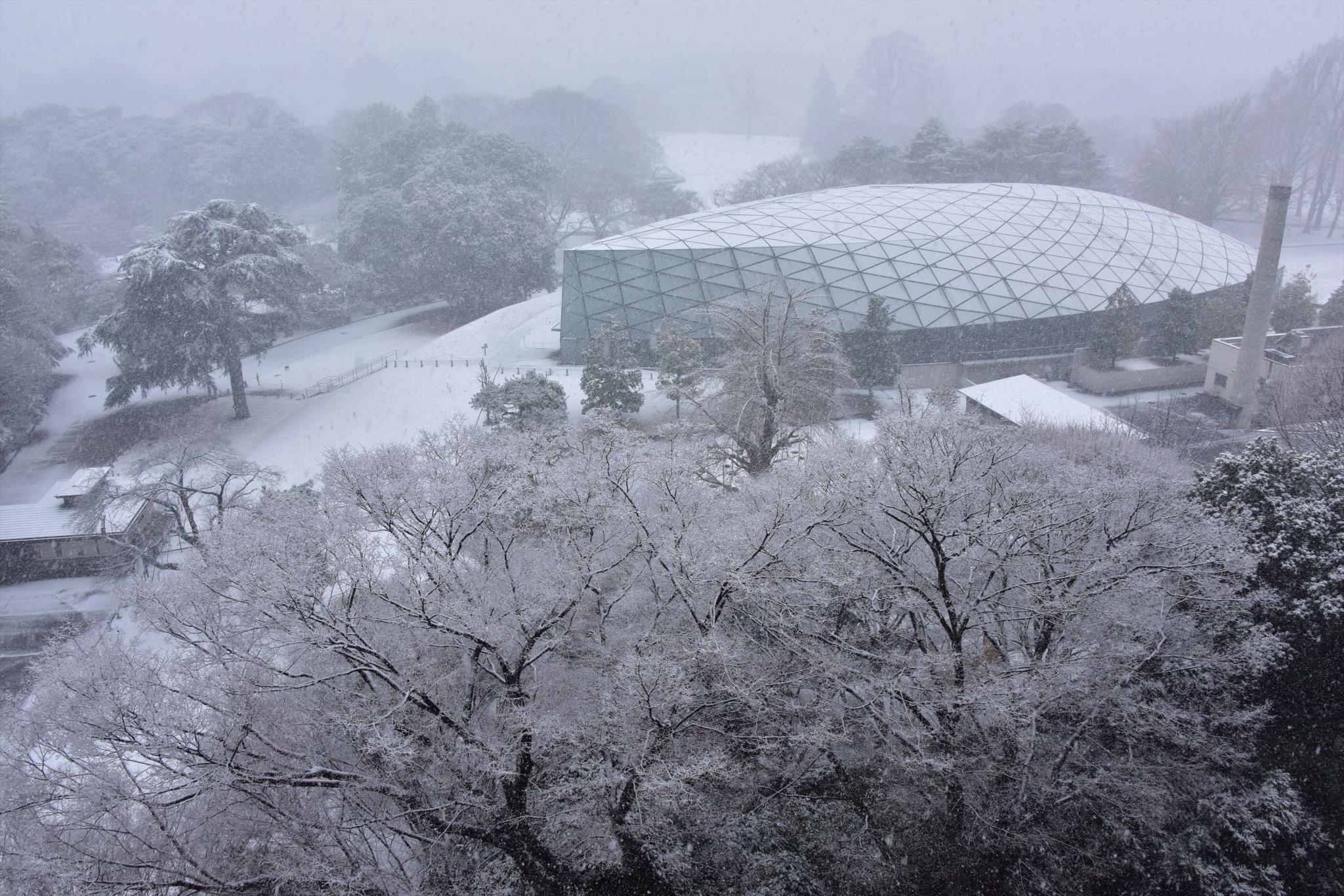 雪の降りしきる新宿御苑の光景はめったにお目にかかれません。貴重な一枚ですね。