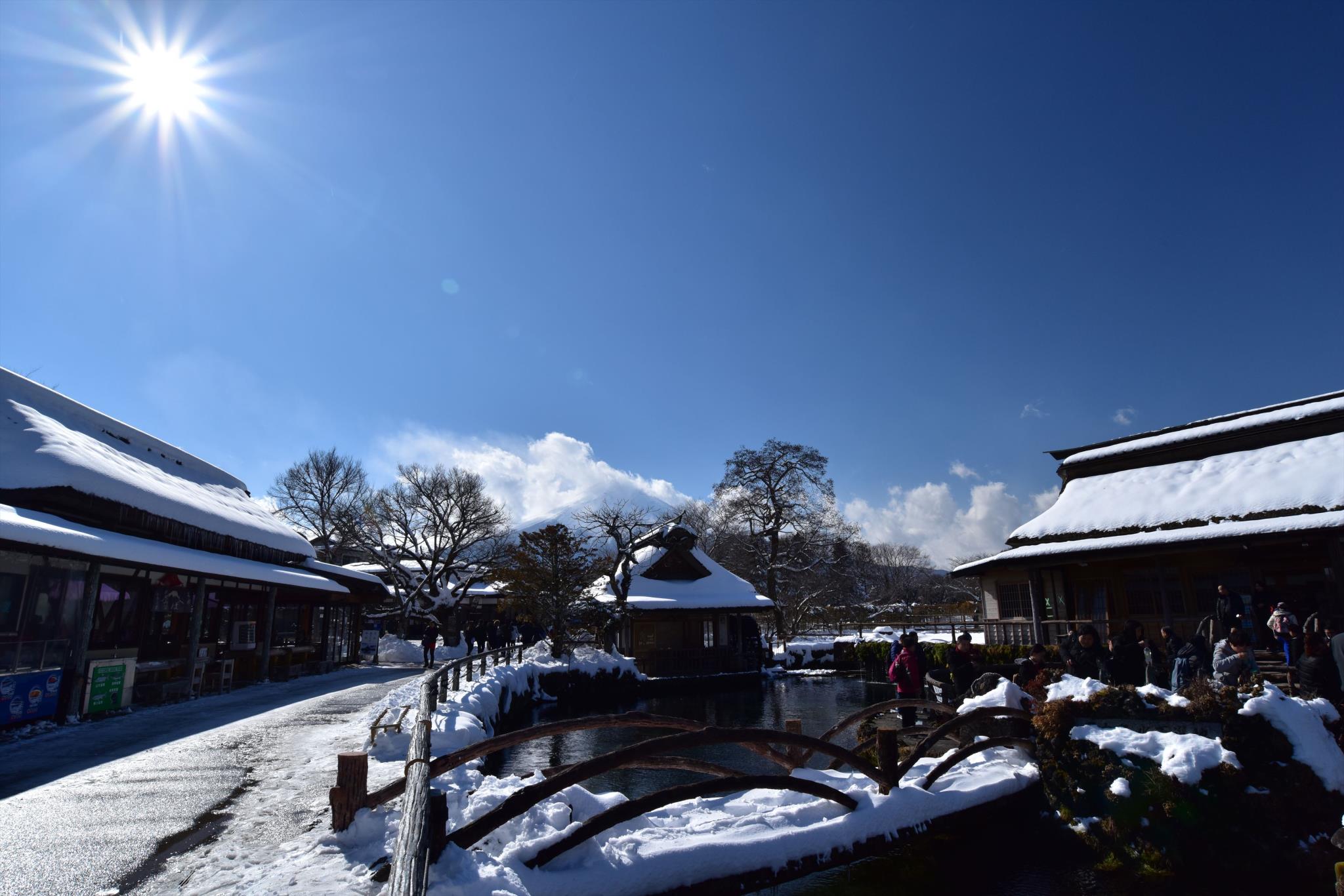 忍野八海は良く見ますが,積雪した光景は初めて見ましたが綺麗ですね。津々とした光景かと思ったら観光客が大勢いますね。