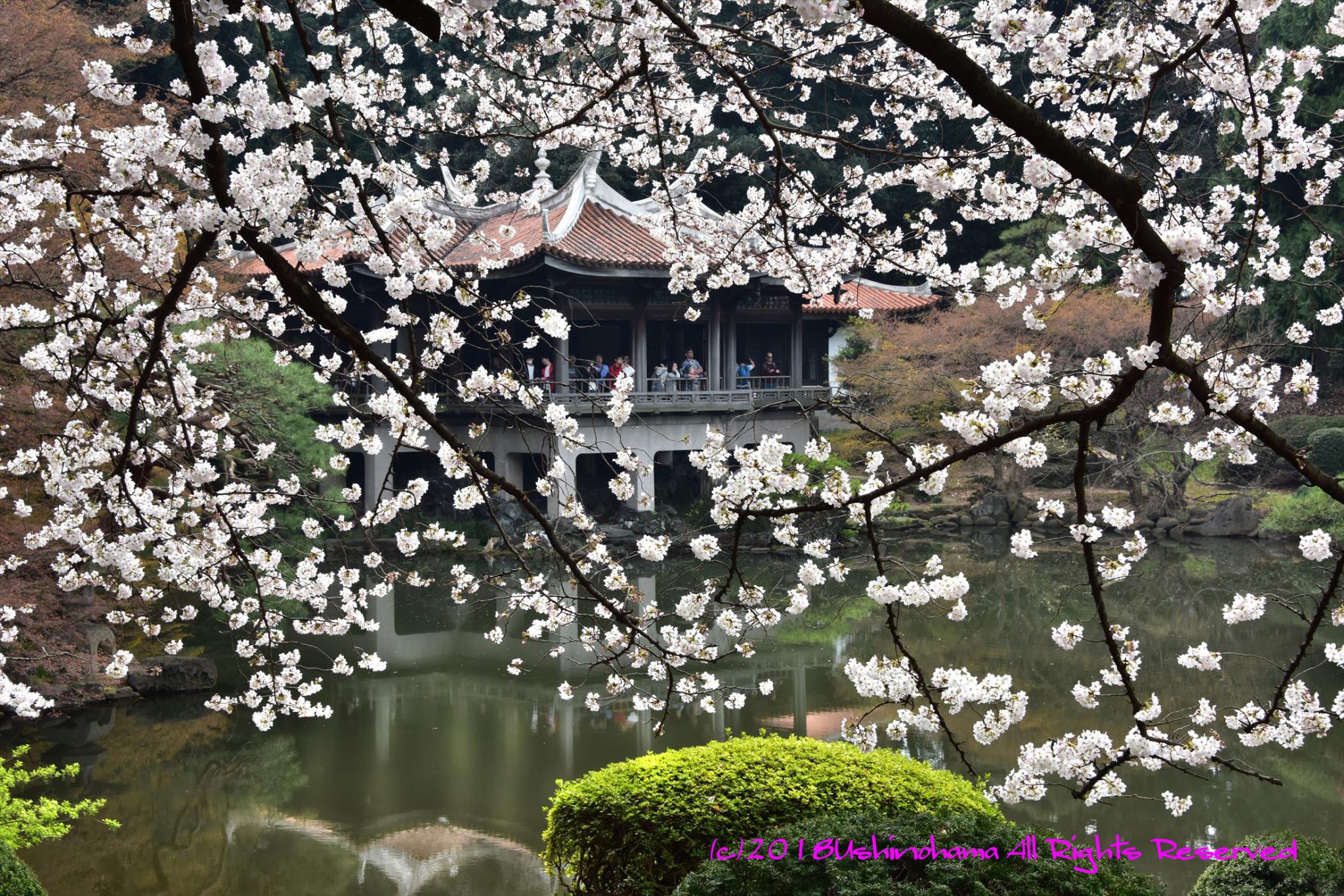 ここでは見に行った時には風は無く落ちた花びらが回るのを見たことがありません。