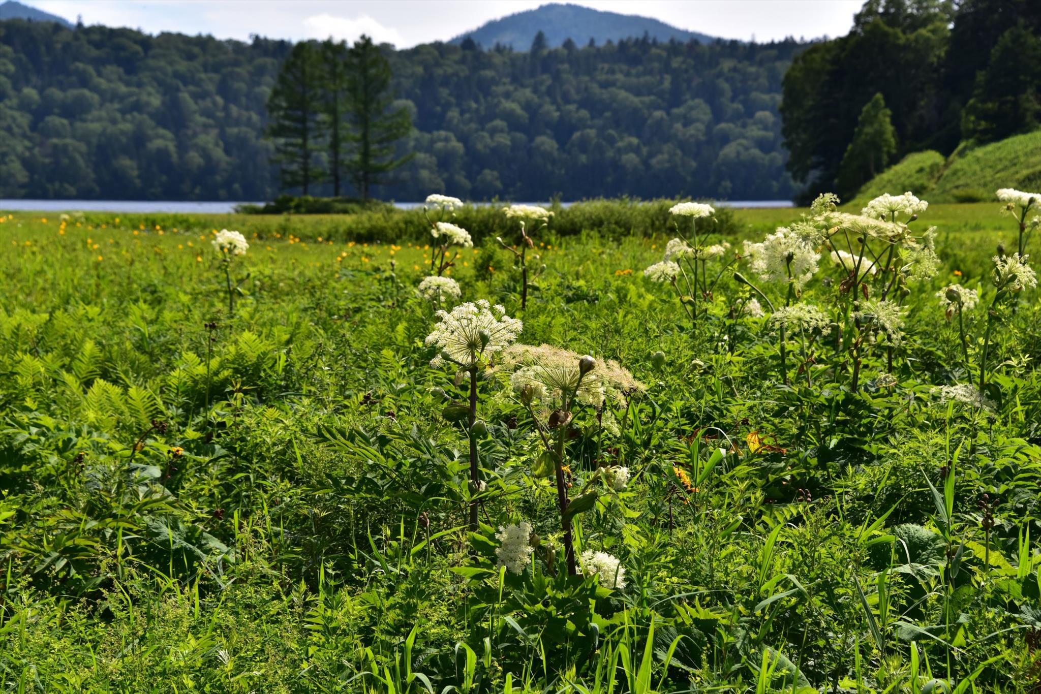ミヤマシシウドと尾瀬沼の象徴、3本カラマツ ☆SIS_7901R.JPG1