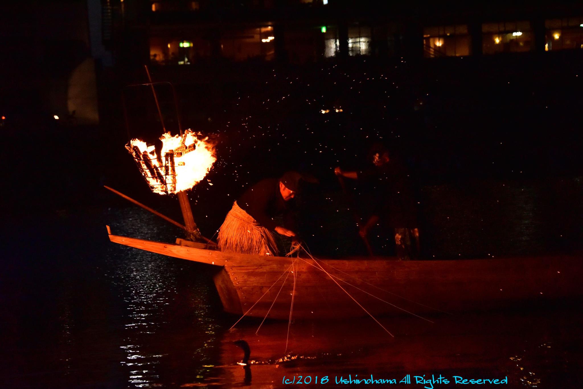 アユは火の所に集まるので、鵜はアユを簡単に捕まえるそうです また鵜は、茨城県にある鵜の岬(だるま太陽撮影場所)で捕え教育されて?長良川で初舞台を見せているのですよ