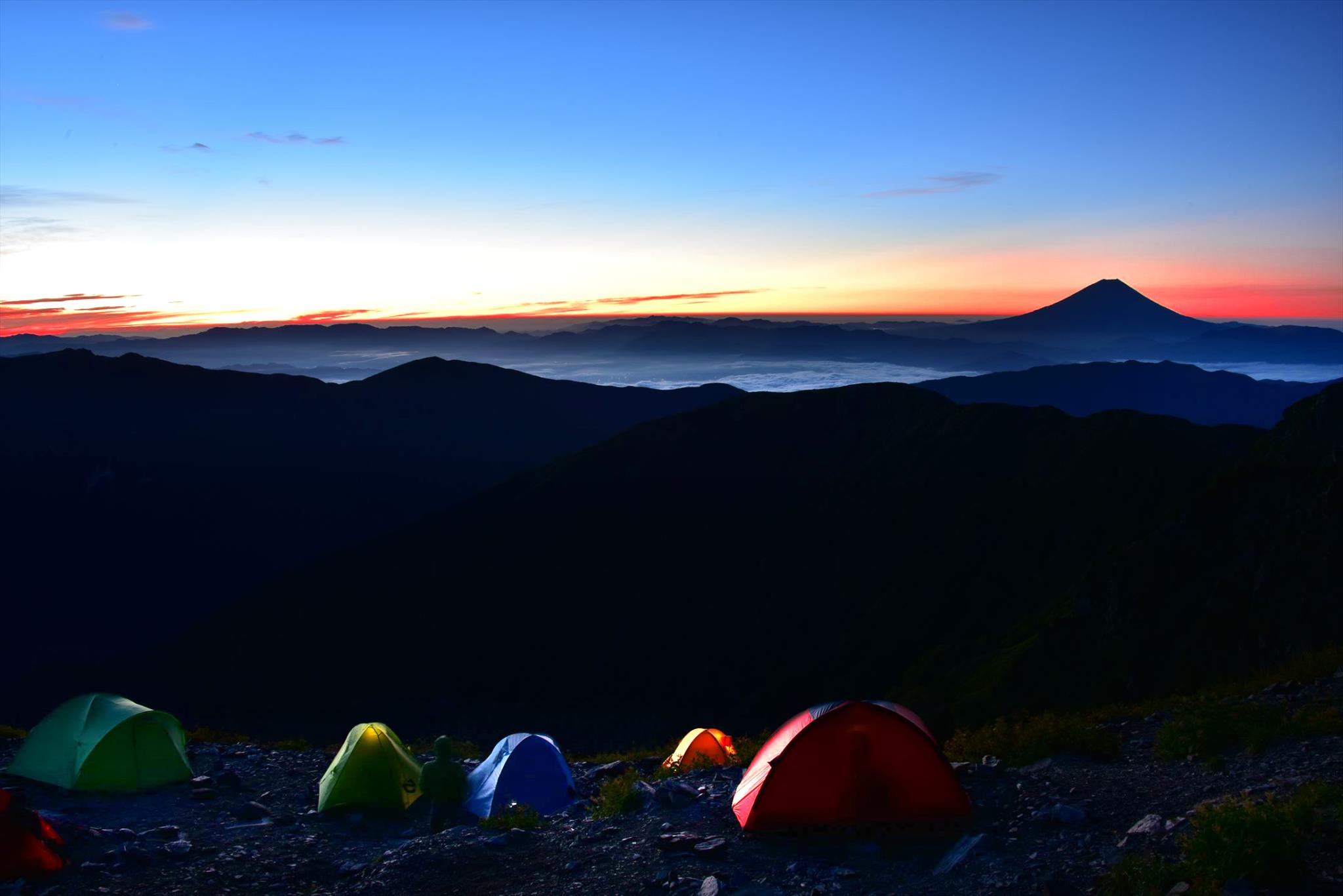 遠くまで縦走する人は早く起きますが、そうでない人はのんびり日が射してから起きだす人もいます。