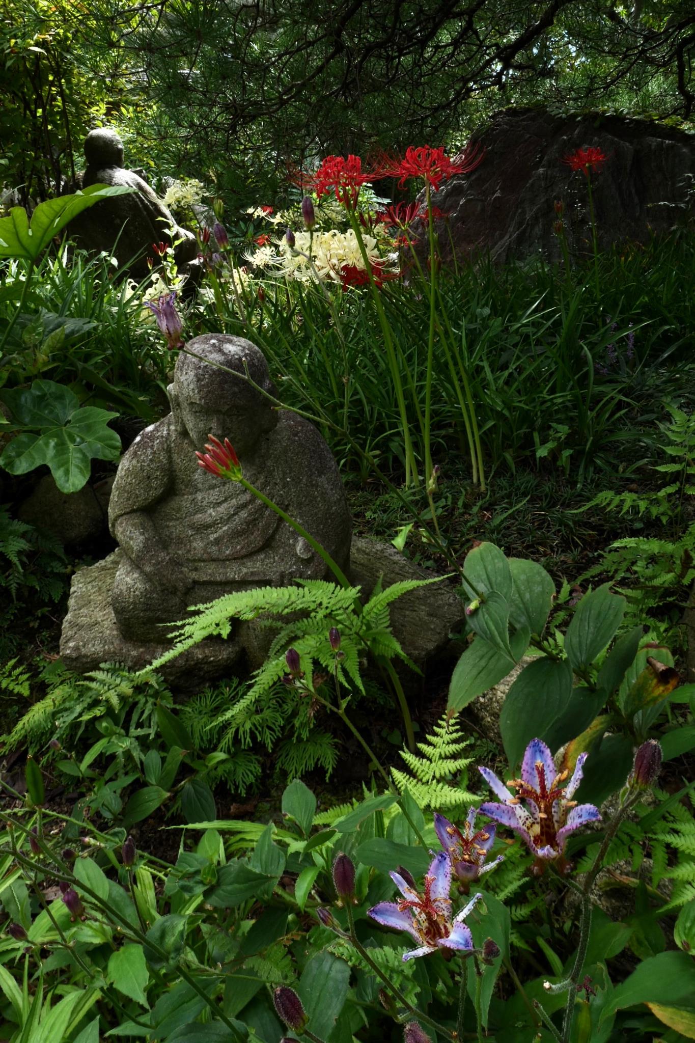 彼岸花に語りかけているようですね。