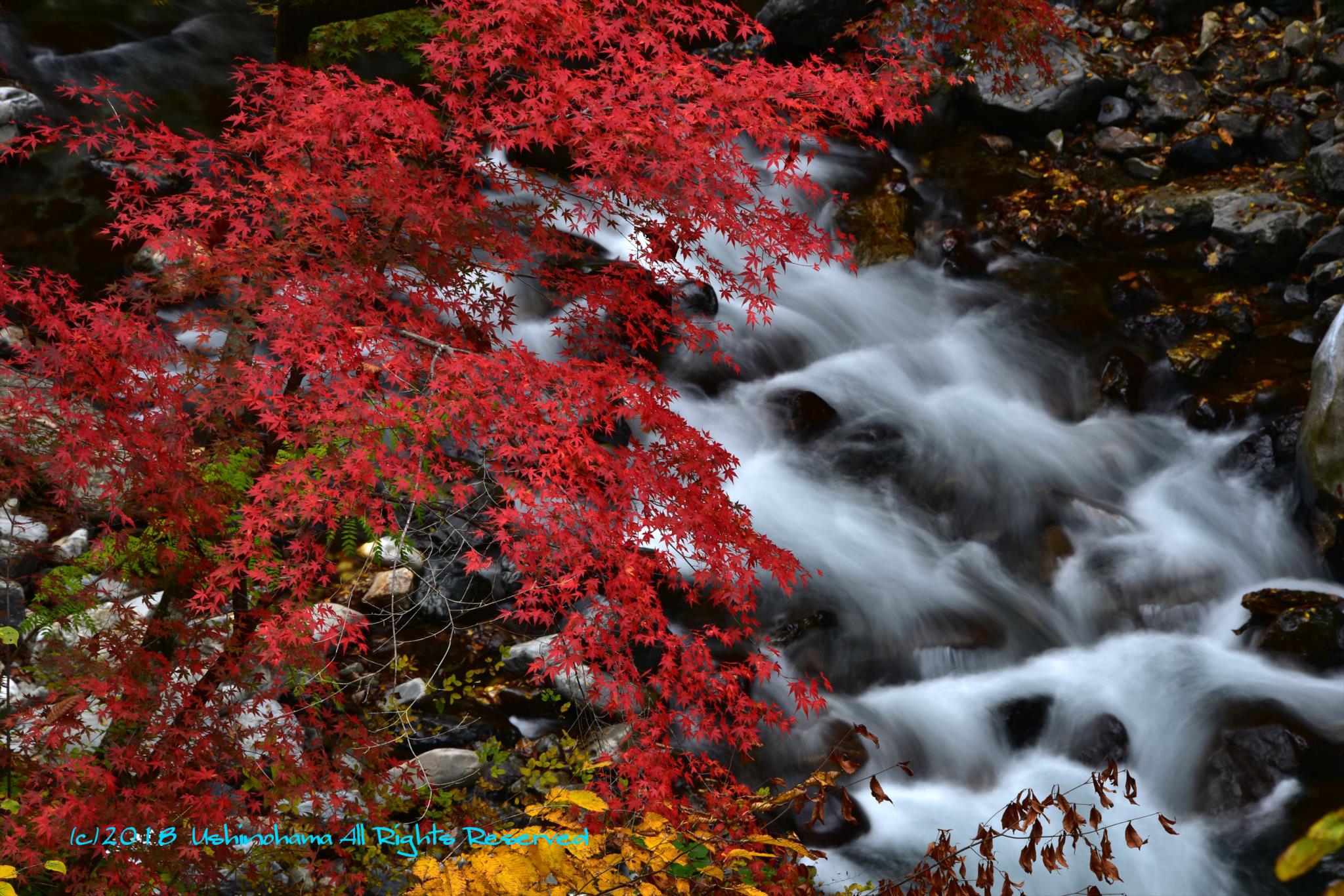 渓流の流れも真っ赤なもみじも素晴らしいです ここは最後に撮影していた場所ですね