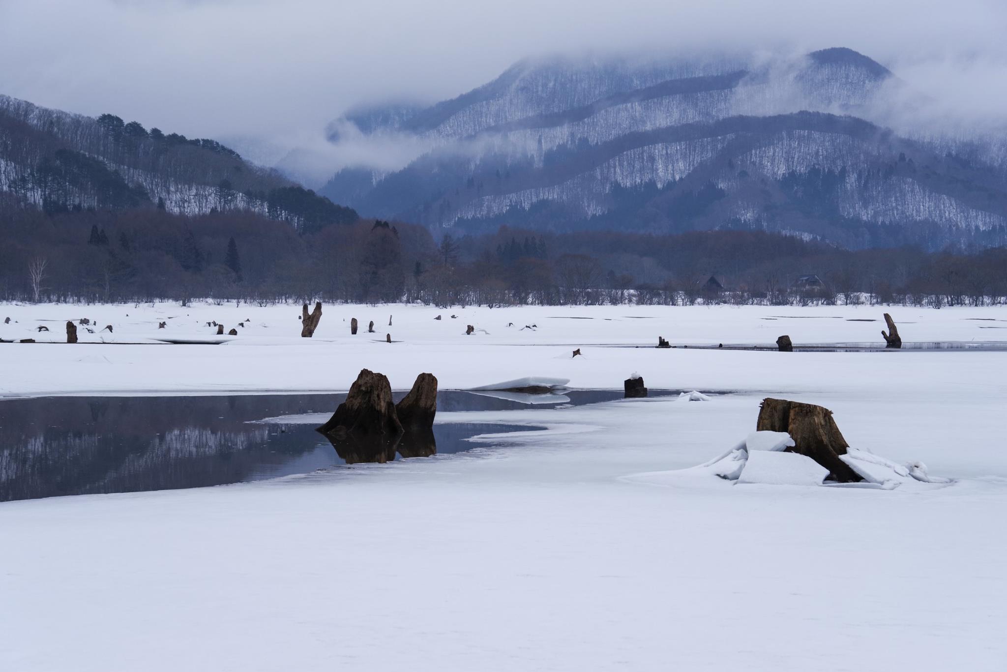 湖になる前はいっぱい木が生えていたようですね。根株があちこちに残っていました。