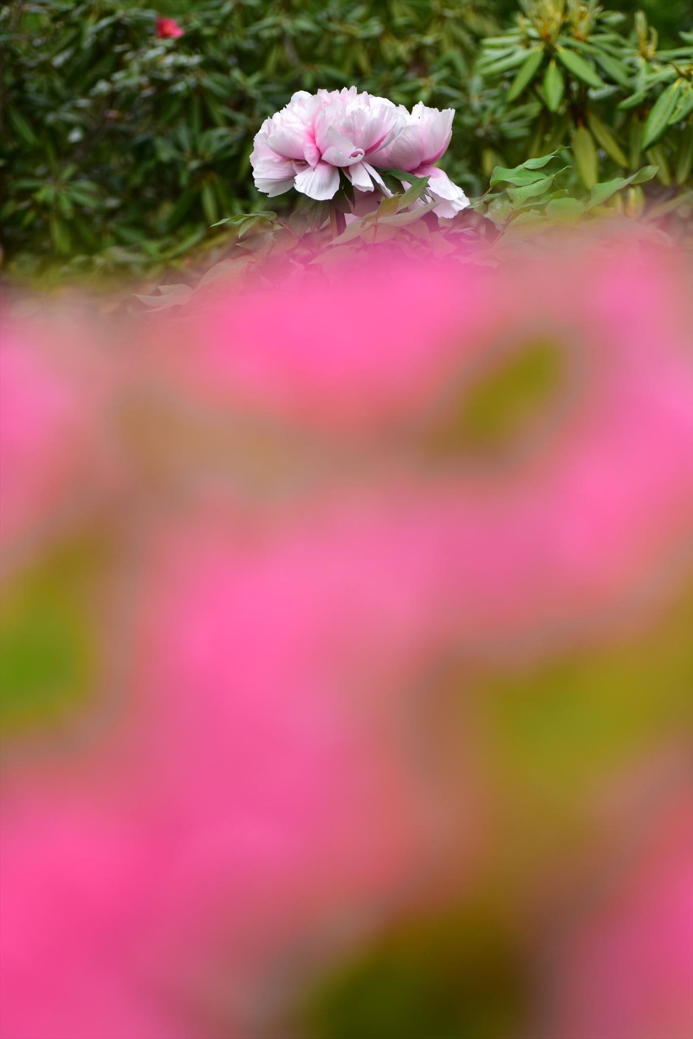 全体を赤く柔らかいボケで包んで、牡丹だけが際立つようにしたかったのですが・・