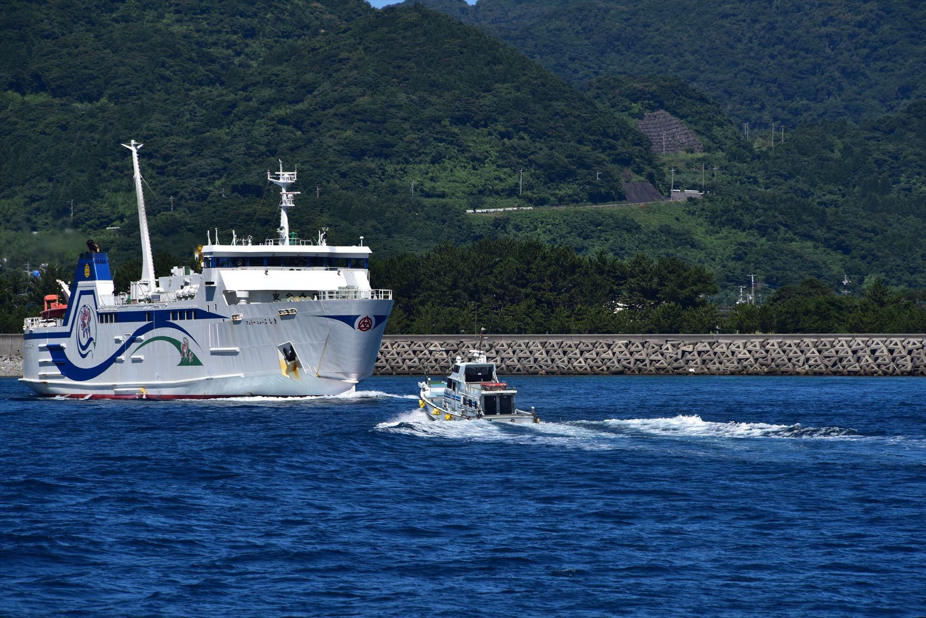 おいおい・・・漁船がフェリーに追突か?高速船は川内港から発着
