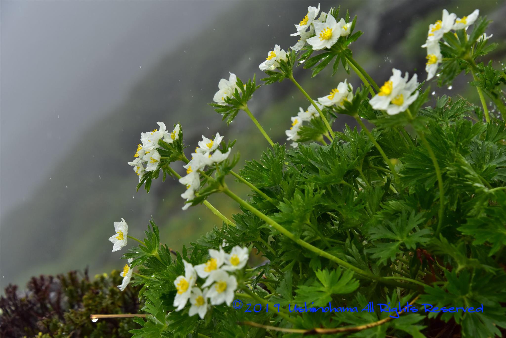 雨に濡れてしっとりとしたハクサンイチゲは綺麗ですね。滴も効果的で、NHKの番組でもこんなに美しい高山植物にはめったにお目にかかりませんよ。