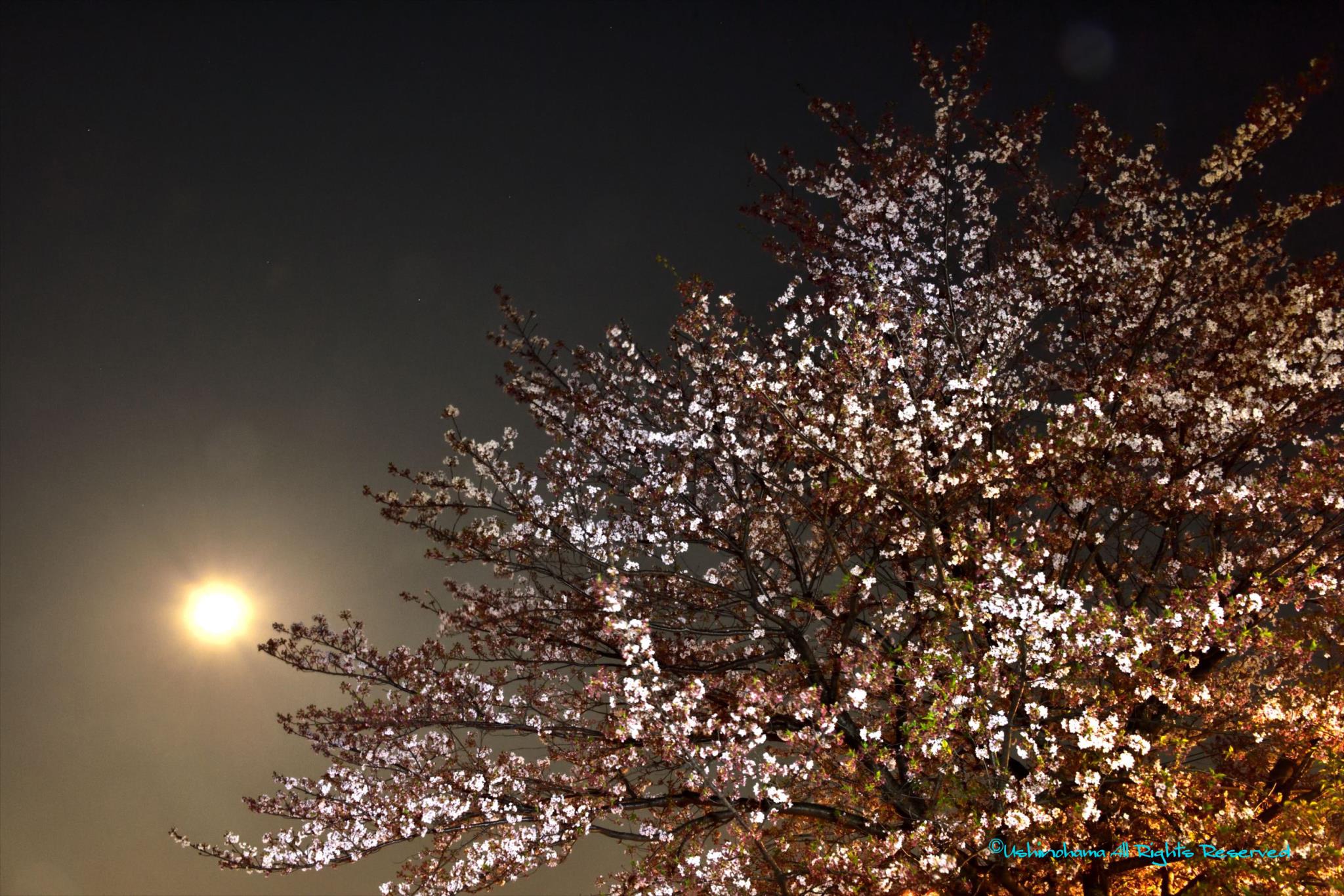 桜が近いので普段より絞っても月にまではピントが合いません。