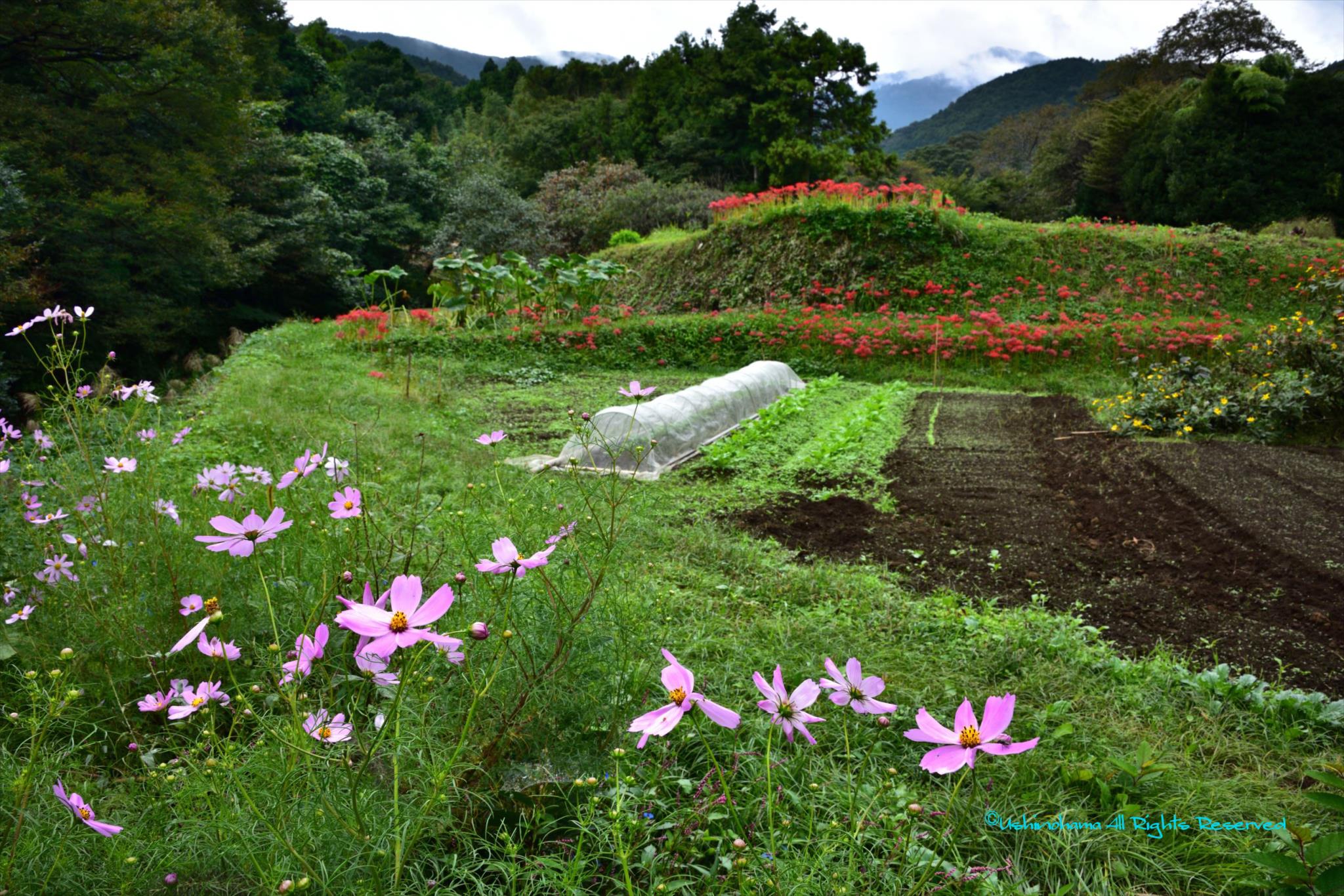 毎年ビニールのあたりは種をまいて苗をしだてるような場所の様で、芽が出たばかりの野菜の苗だったりします。
