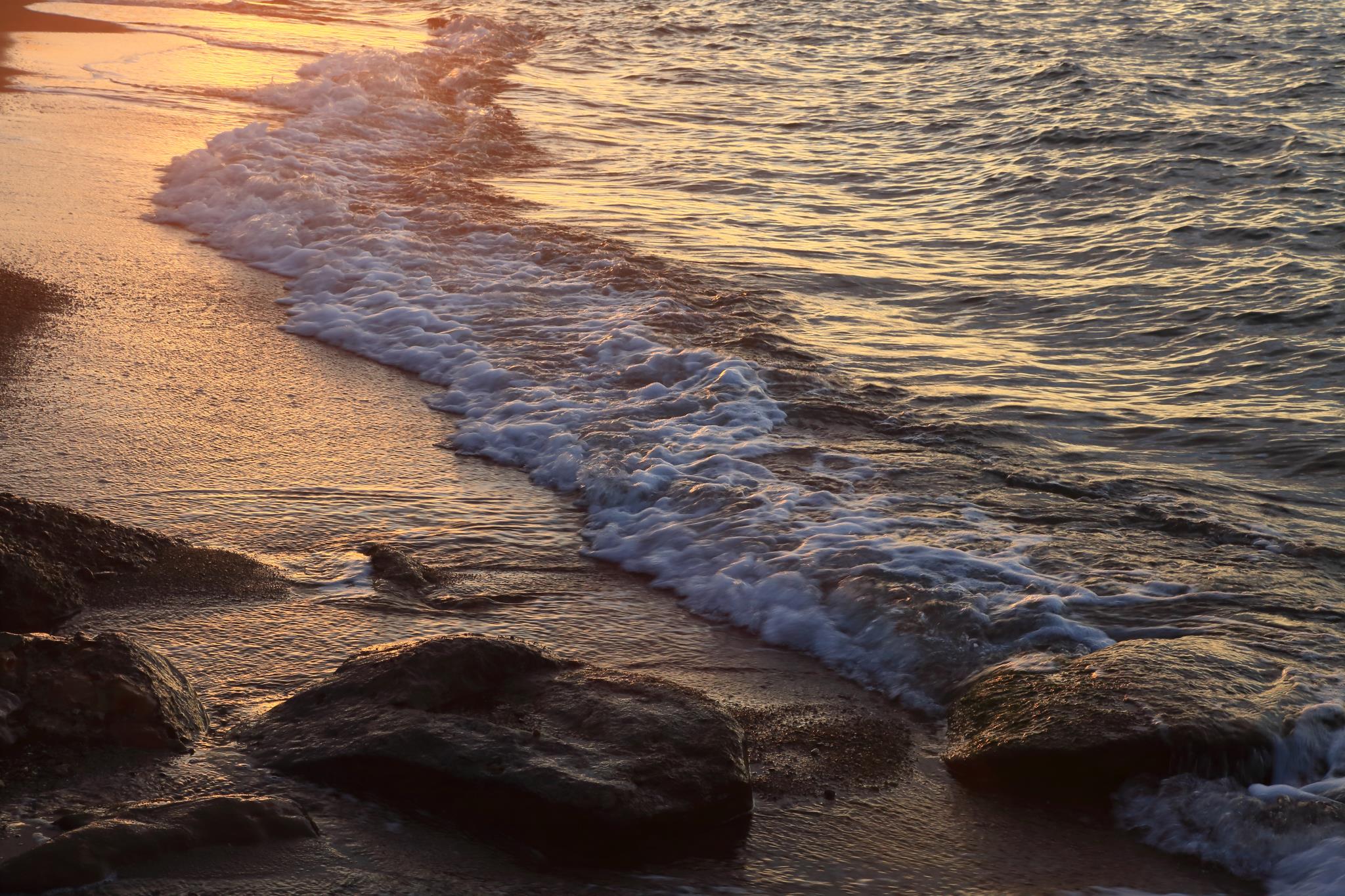この岩に波が被さり、流れ落ちるタイミングで