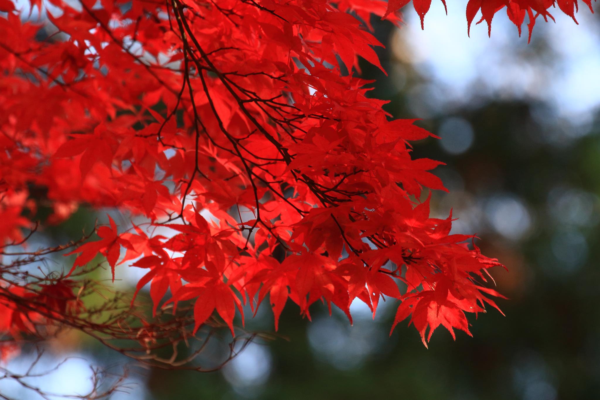 赤い葉と光の丸がとてもきれいで、細い枝の入り方が繊細で、ステキですね。