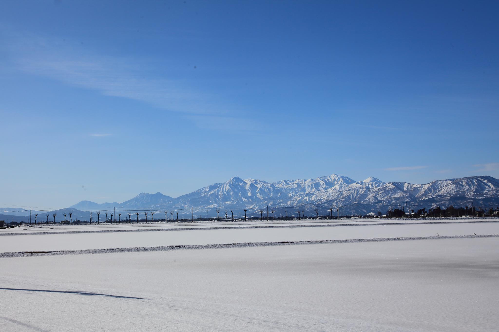 左から飯綱、黒姫、妙高、火打、焼山と信越県境に連なる妙高連峰です。