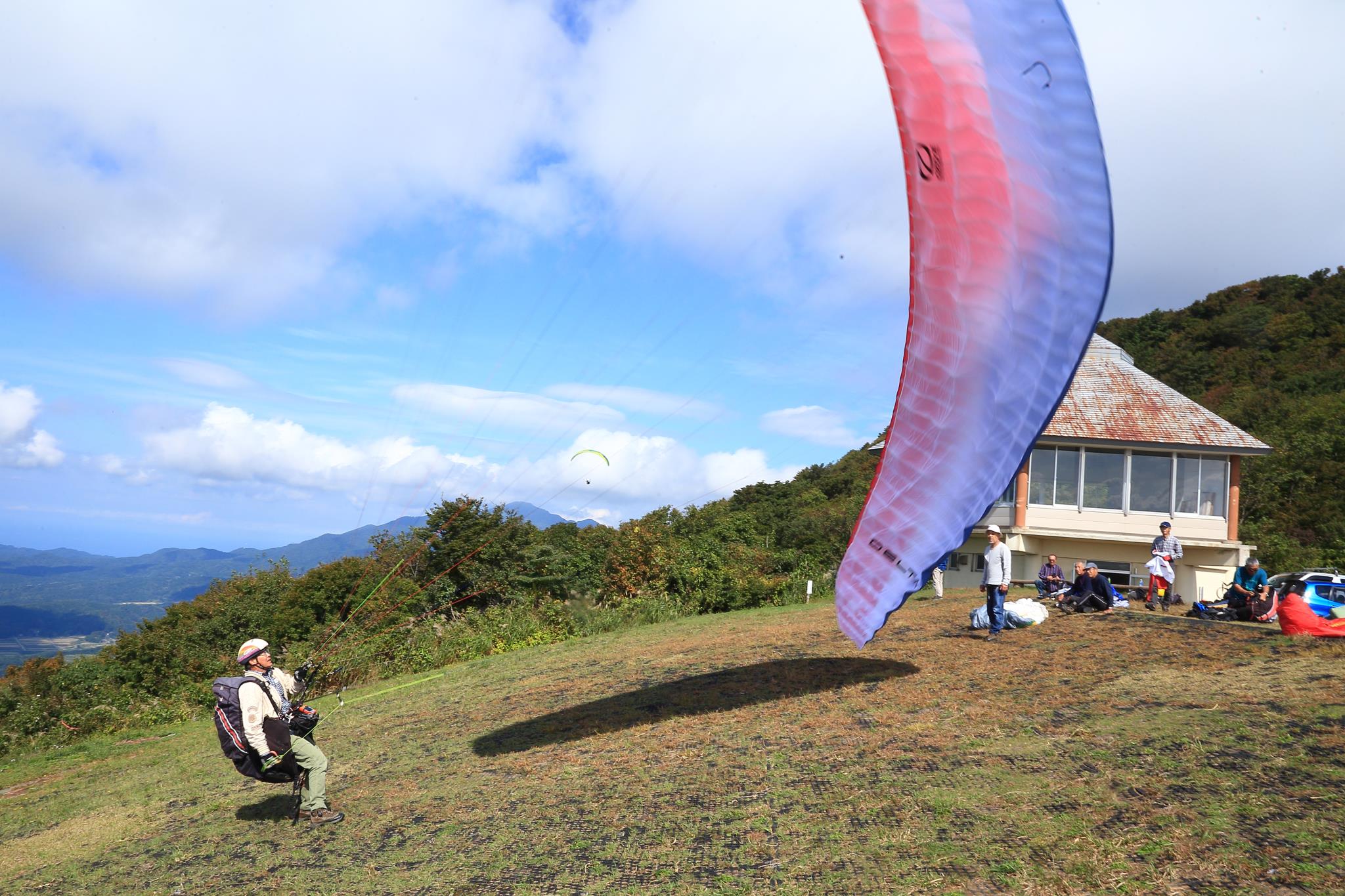 パラグライダー一式のお値段は50~60円万位らしいです。初心者は中古品はやめて新品を買った方が良いと話していました。道具を使う趣味はお金が掛かりますね。