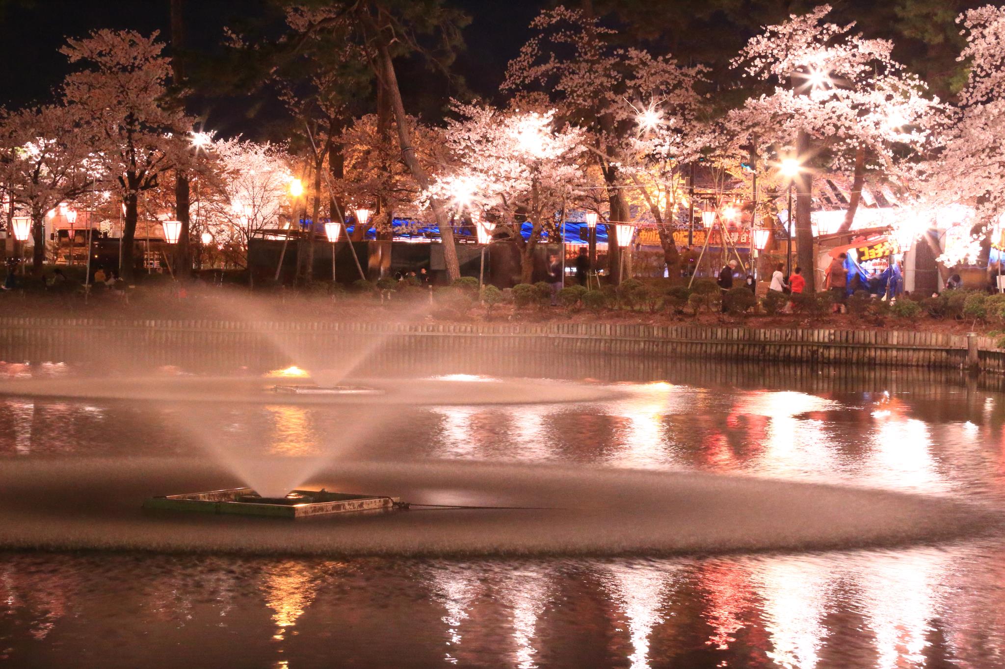 屋台には夜桜見物のお客が見えますが,土日には沢山の観光客も見えるのでしょうね。