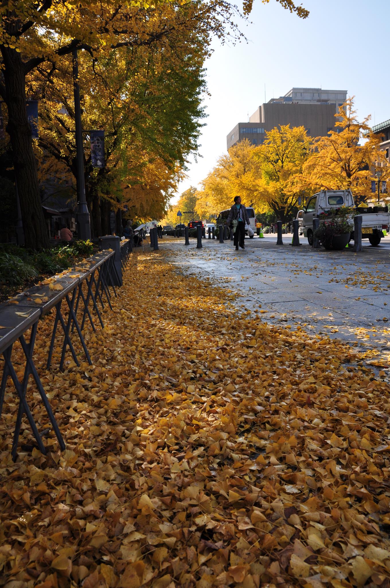 落ちているギンナンを踏まないように歩くのが大変でしたよ。
