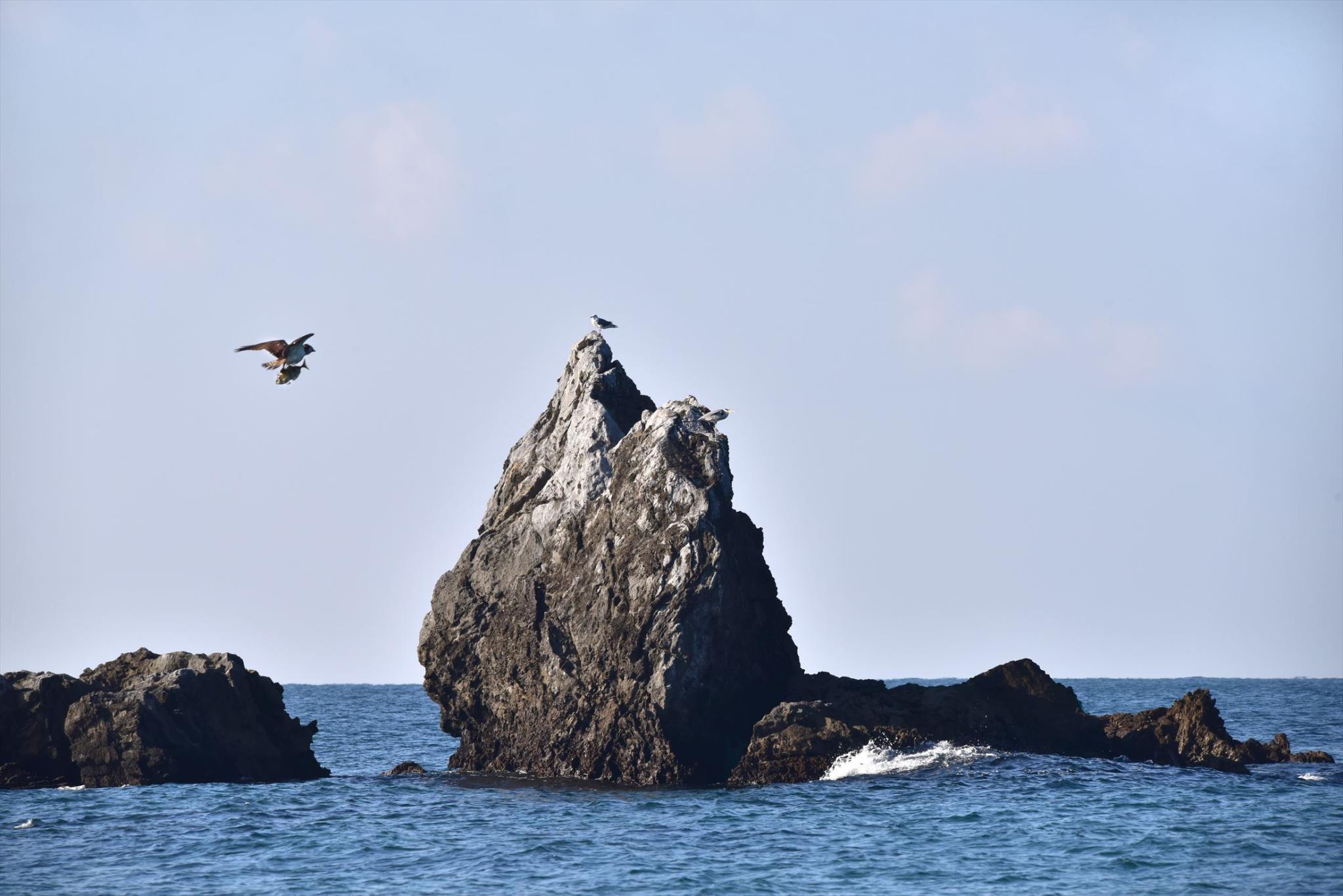 朝の散歩を兼ねてカメラ持参で牛ノ浜海岸に出かけました。トビたろうと思いますが、新年早々大きい魚を捉えていました。