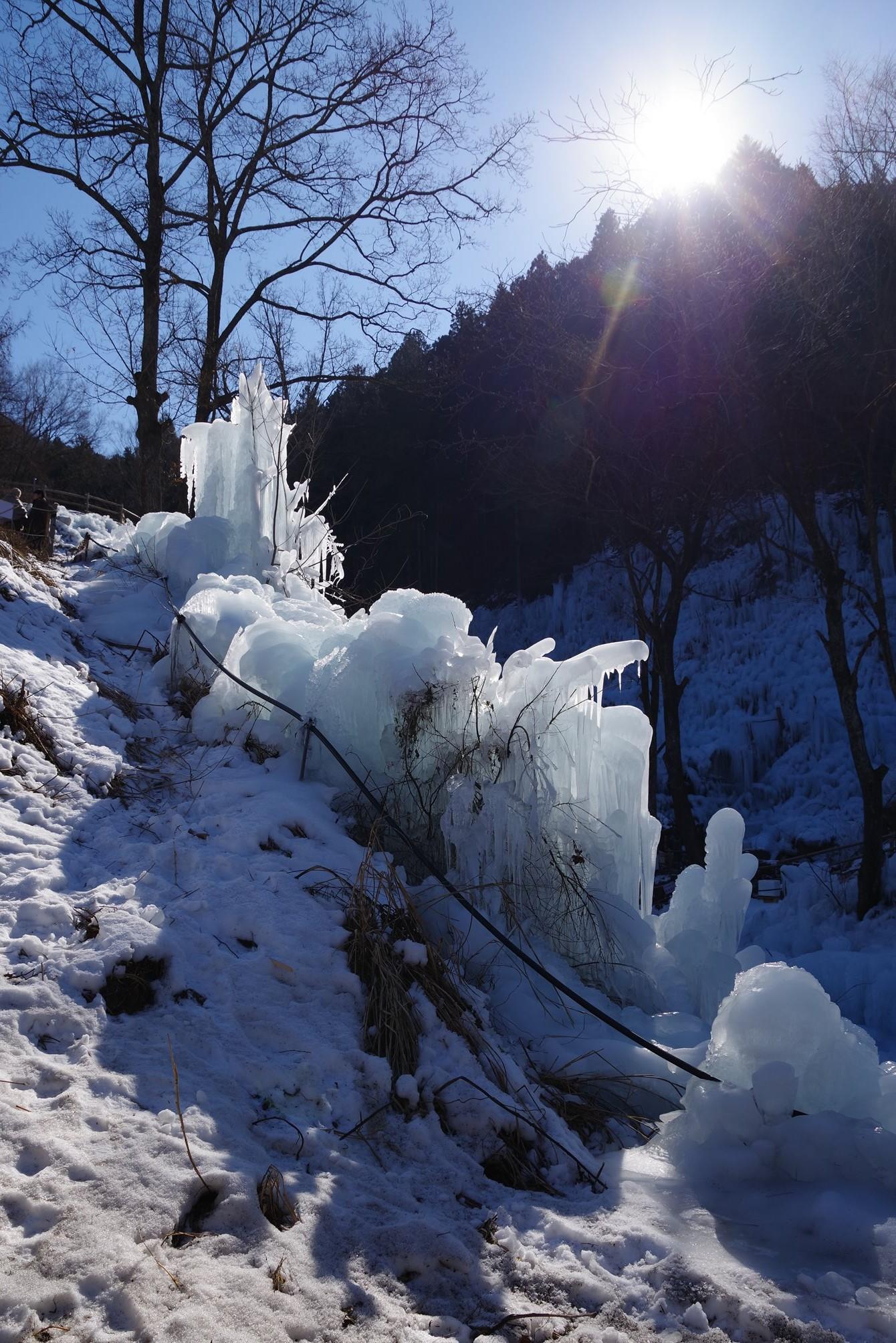 雪と氷柱のコラボを撮られましたね。光が当たって氷柱が浮き立って綺麗です。