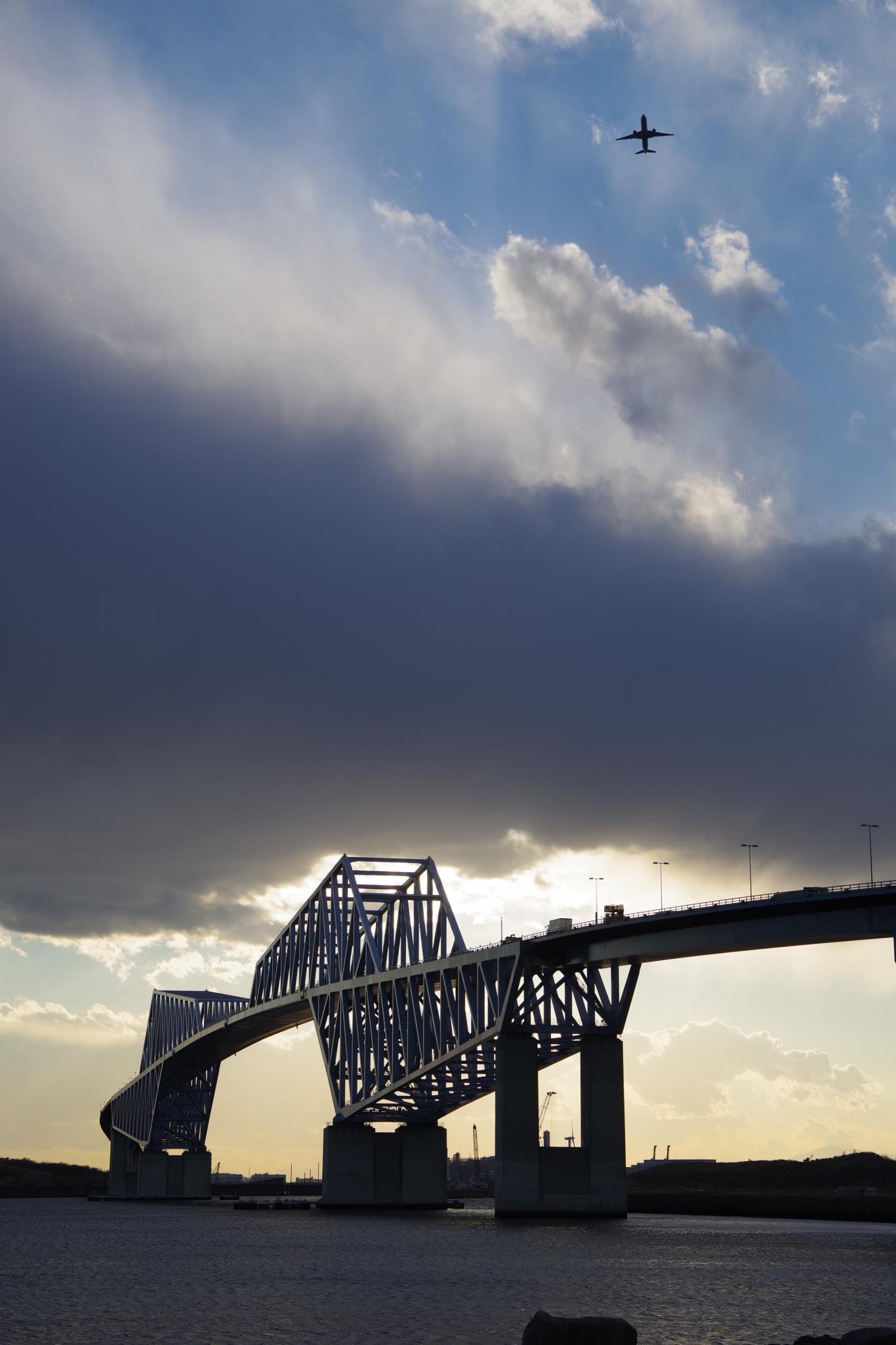 ゲートブリッジとジェット機の位置関係が絶妙です。