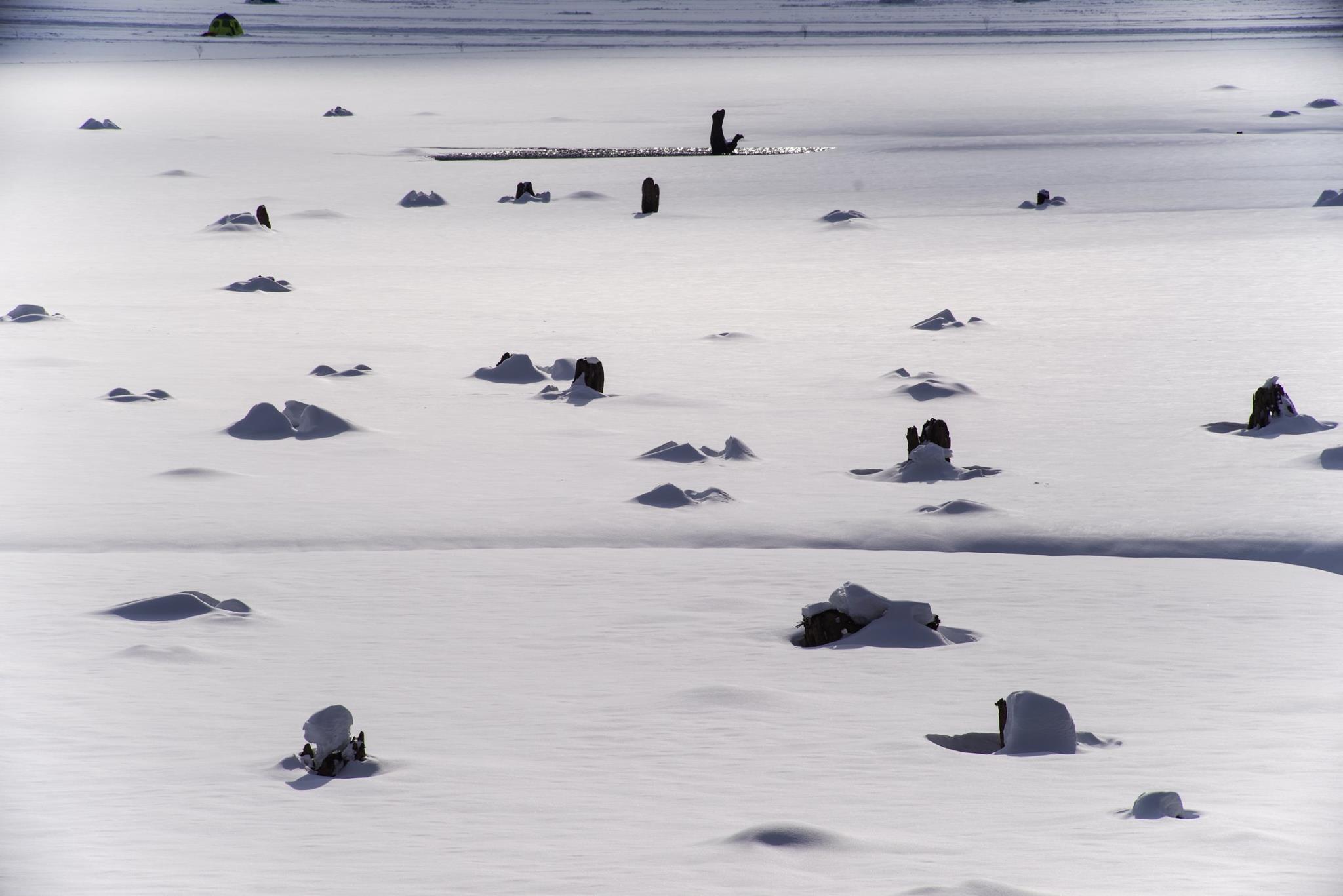 このあたりは少し氷が薄いようで、ワカサギ釣りの人がいないので、すっきりした景色になりました。