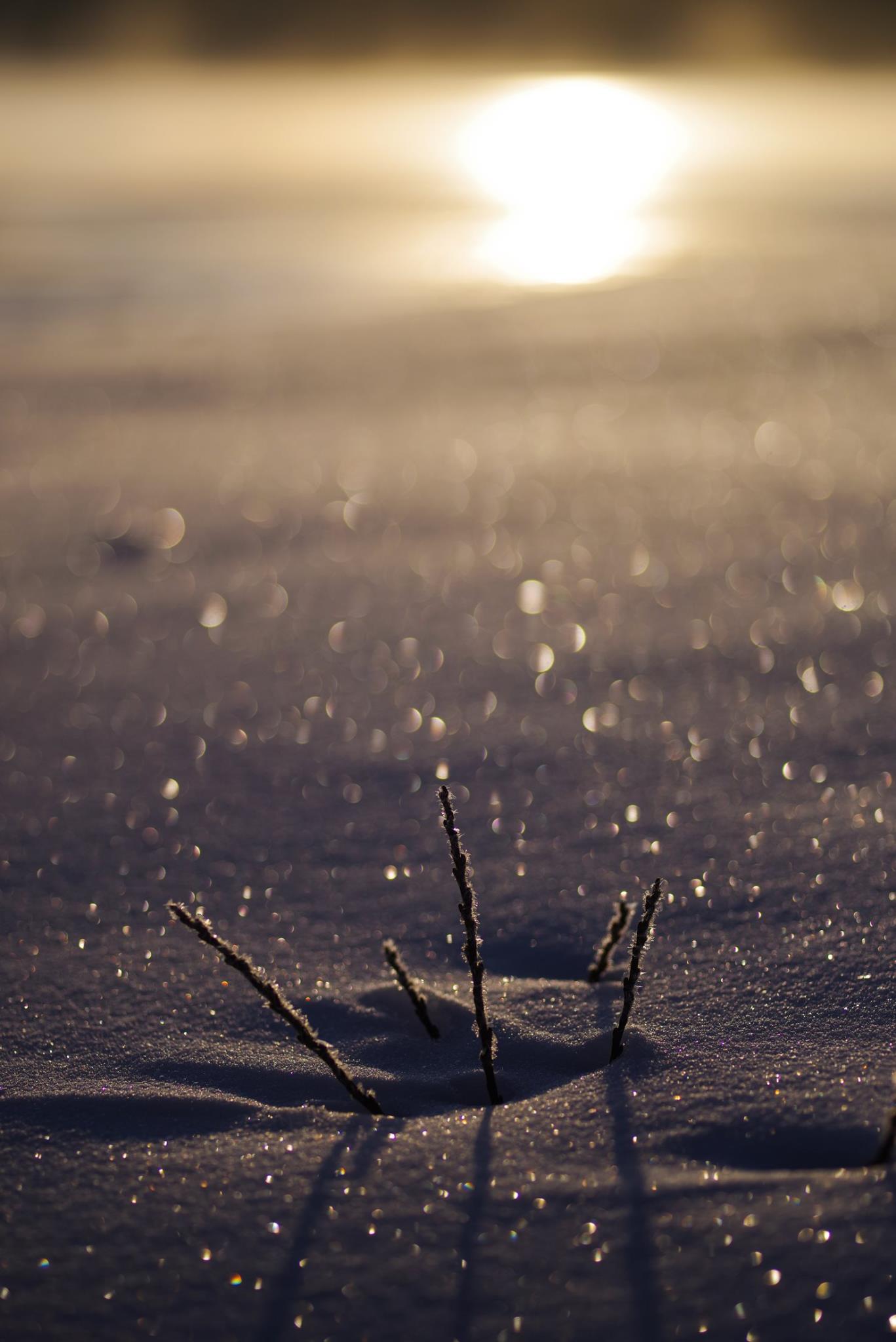 これは雪面の反射のキラキラがボケたようでした。マクロで這いつくばって、絞り開放で・・