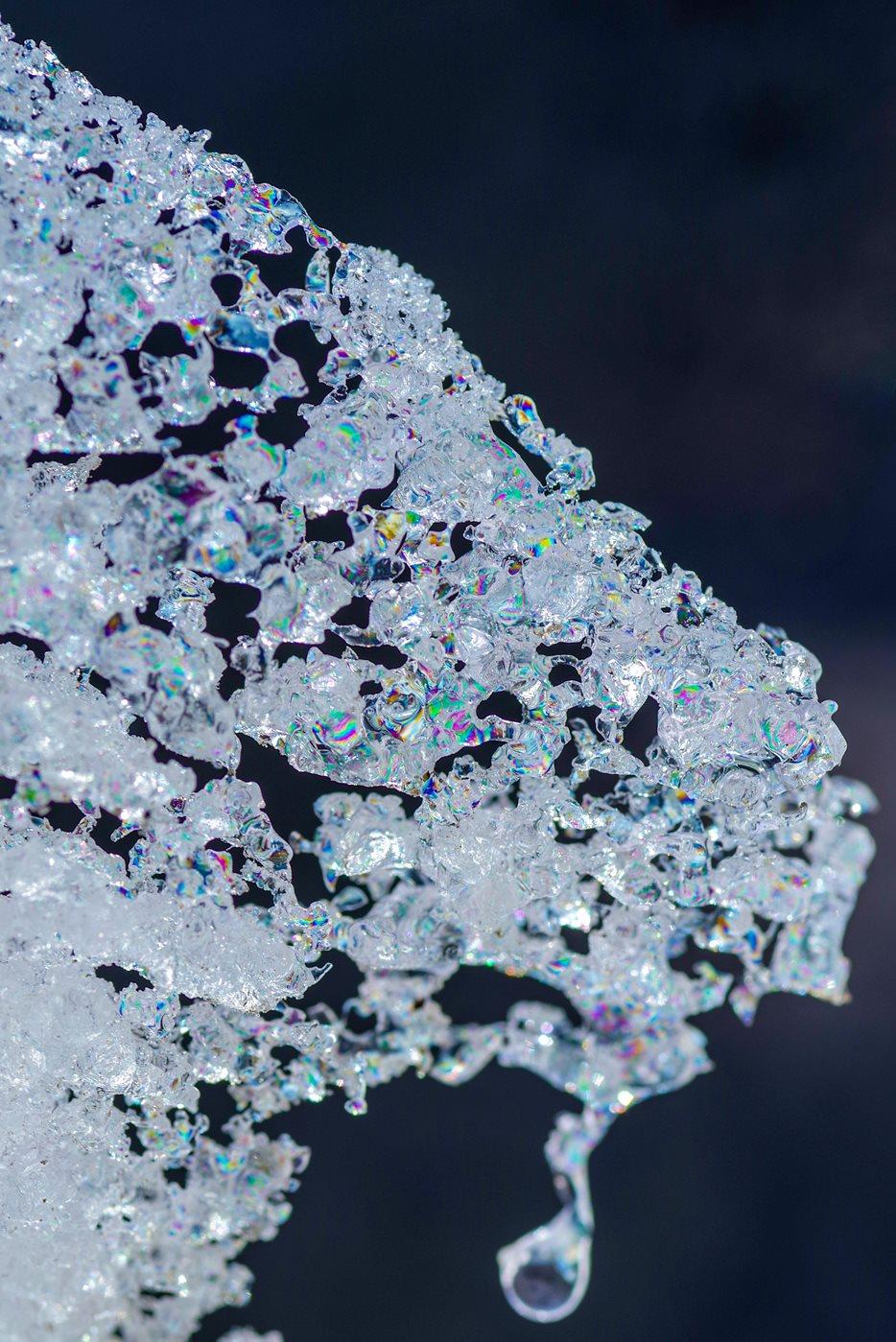ちょっと中途半端な姿勢で撮っていたので大変でしたが、ちゃんと三脚を立てて、氷柱と垂直方向から絞って撮れば全面に虹が見られたかもしれませんね。
