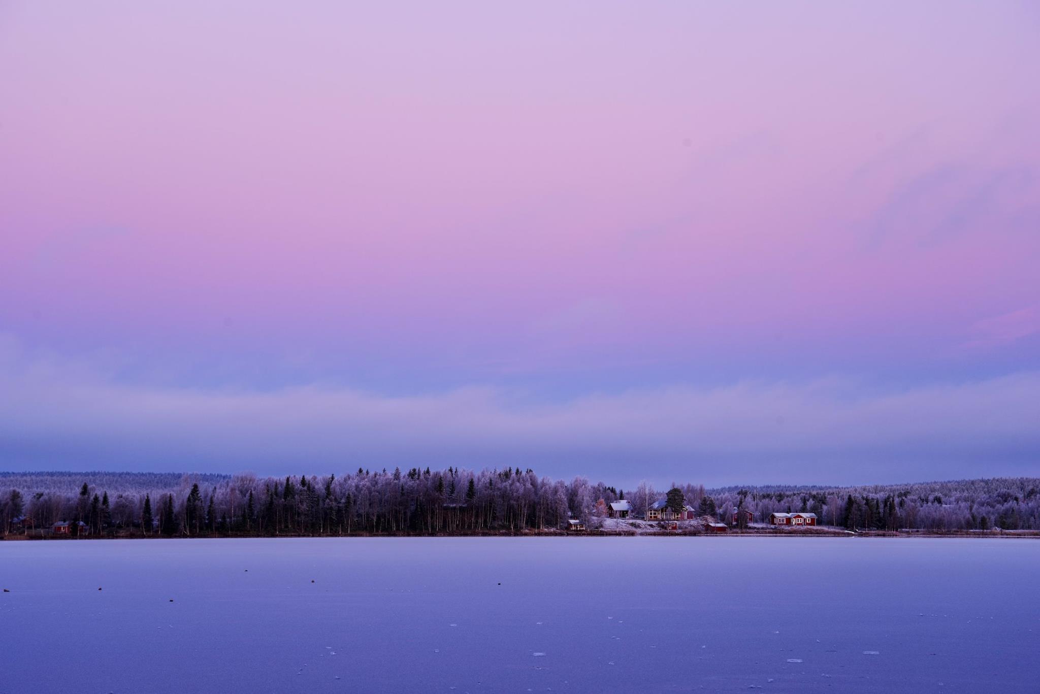 白い世界に、薄紅に染まる空。