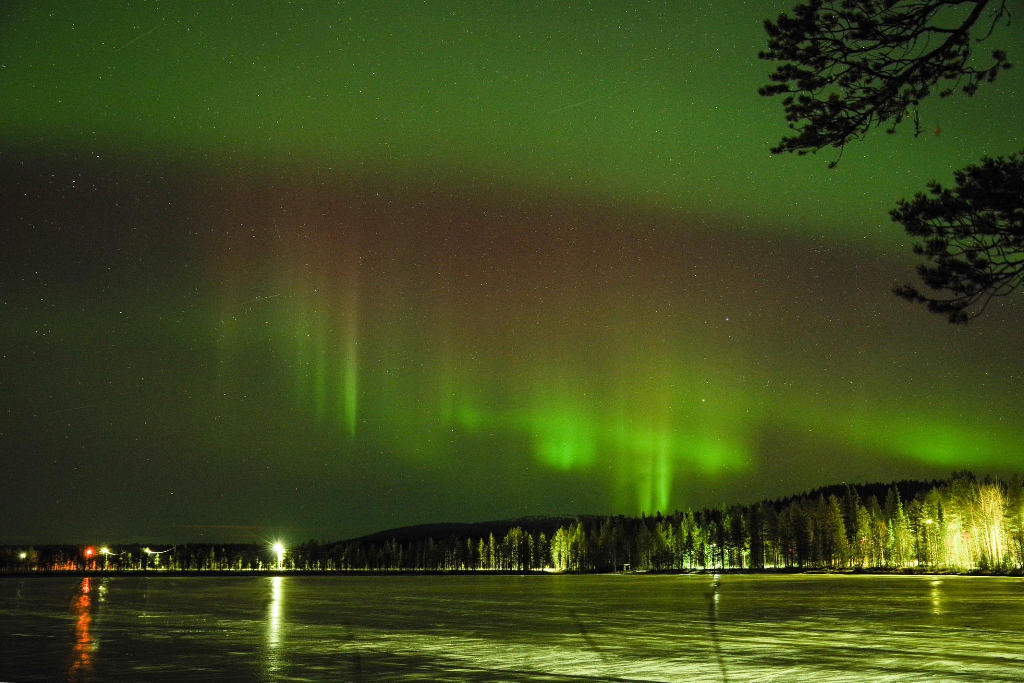 オレンジ系のオーロラは肉眼で見ているときは気づかなくて、写真で良く見ると写っていました。
