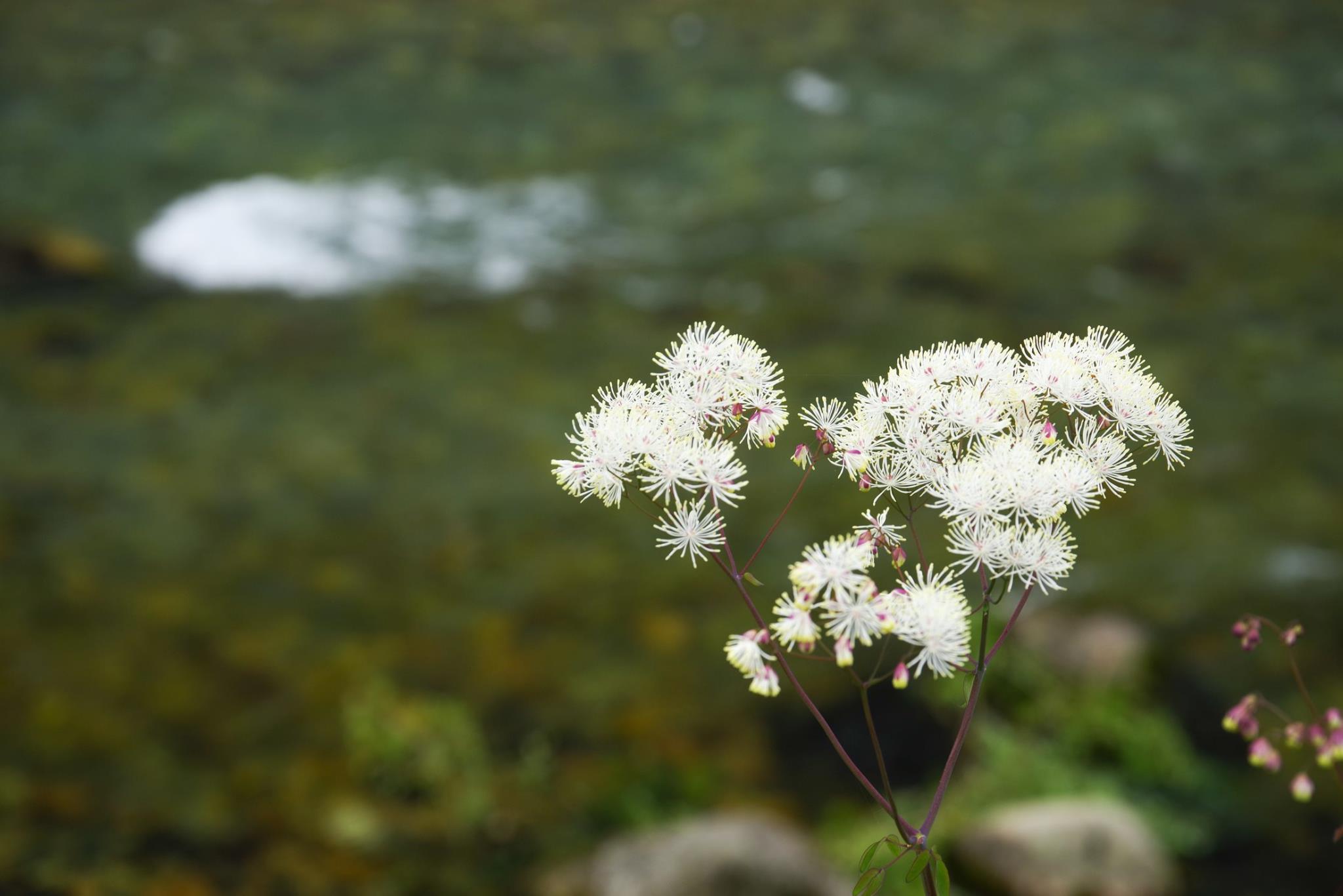 ミヤマカラマツがもう咲いていましたか。一寸開花が早いような気もします。尾瀬にもよく咲いています。葉っぱを見ないとどっちか判断に迷いますというか解りません。奥の白く見えるのは水の飛沫でしょうか。