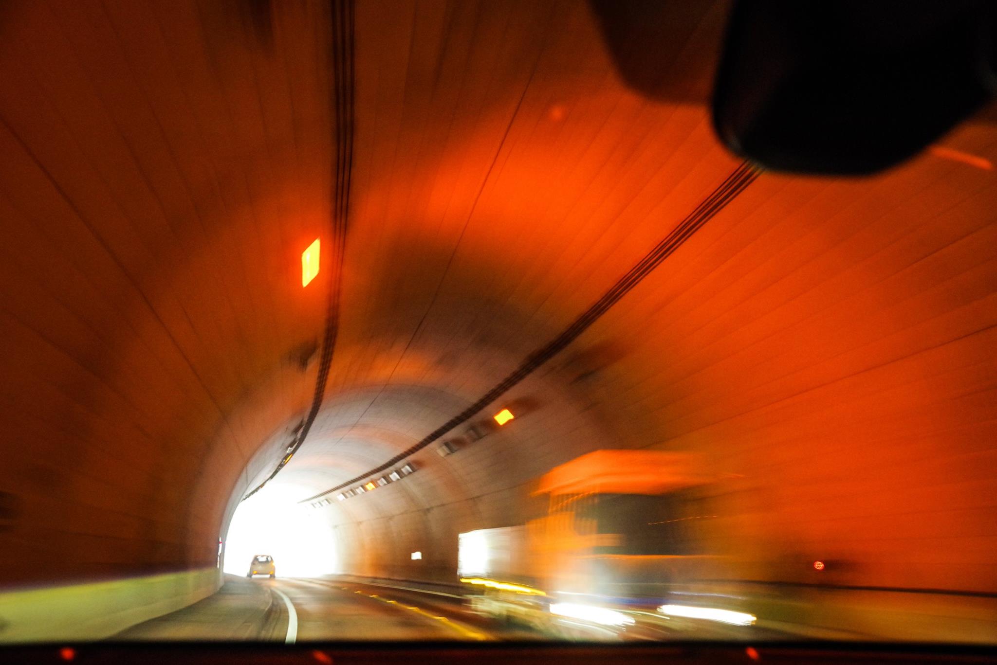 setumiyaさんのリクエストで撮ったトンネルの中。ナトリウム灯なのでトンネルはオレンジ色に・・