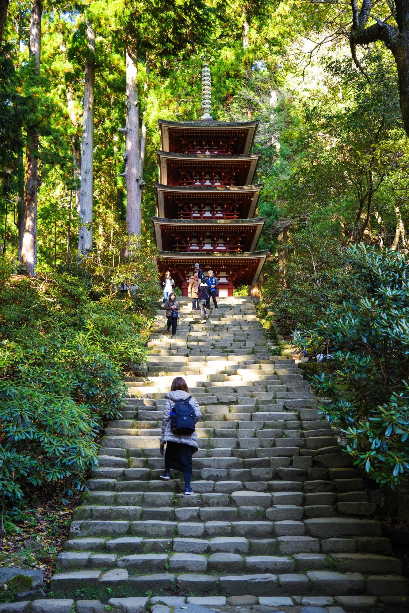 この先の石段を上ると奥の院があるのですが、その途中で見下ろす五重塔も撮れます。