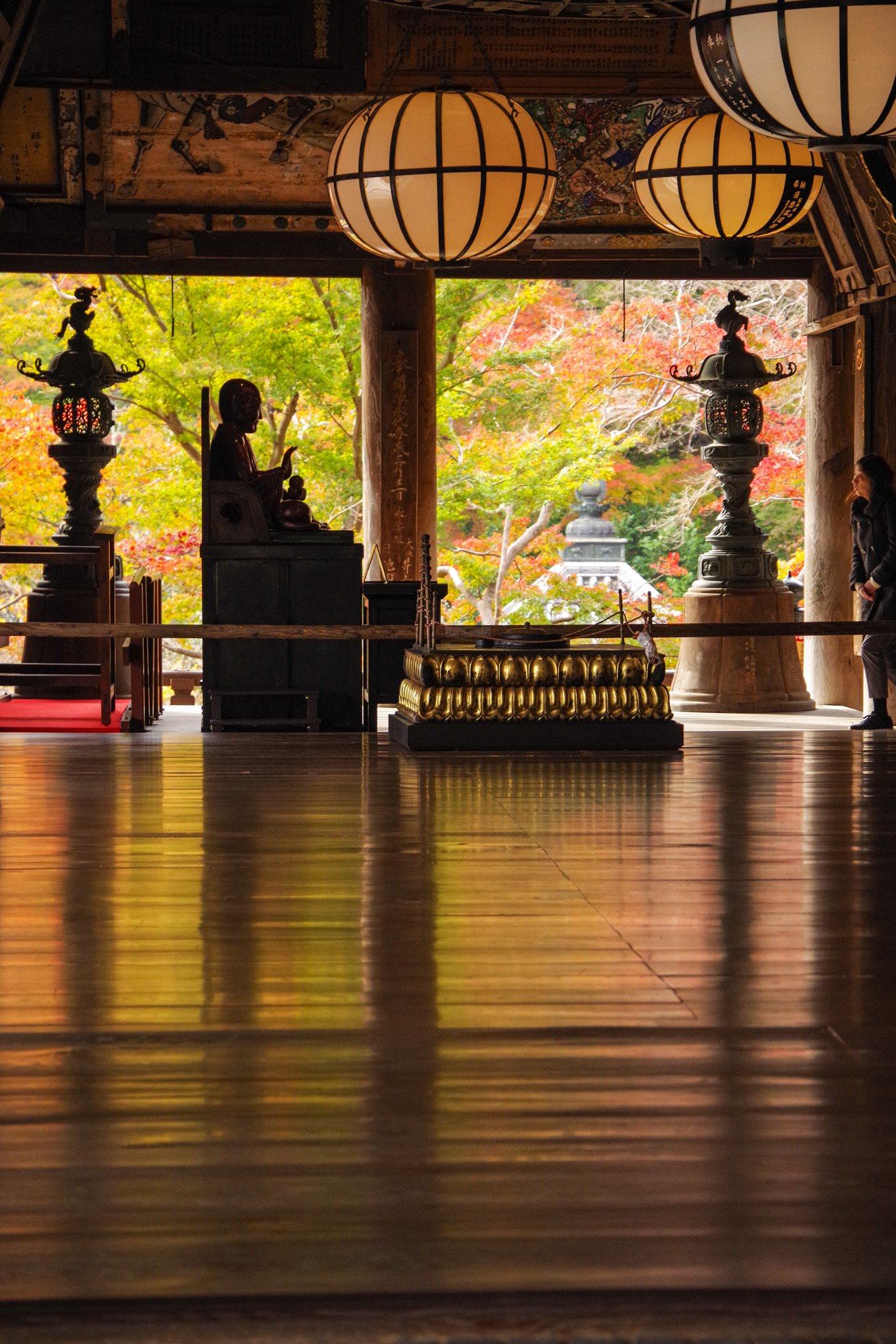 長谷寺の本堂の床への紅葉の映り込みが素晴らしいです。この床、毎朝僧侶さんが磨き上げているのでしょうね。