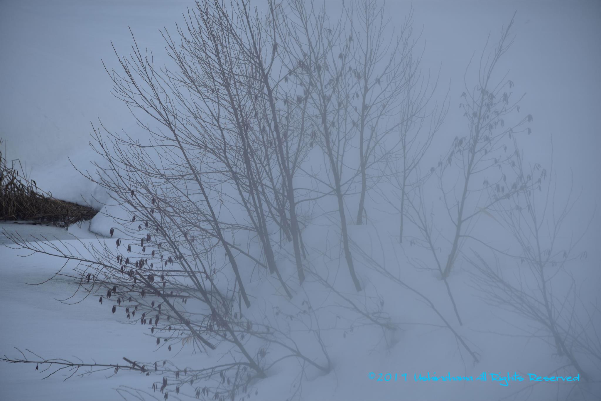 ペンションの曇って水滴がついた窓ガラスにくっつけ加減にして重ね具合を調整しながら撮りました。本当は雪は全く降っていなくてクリアーな風景でした。