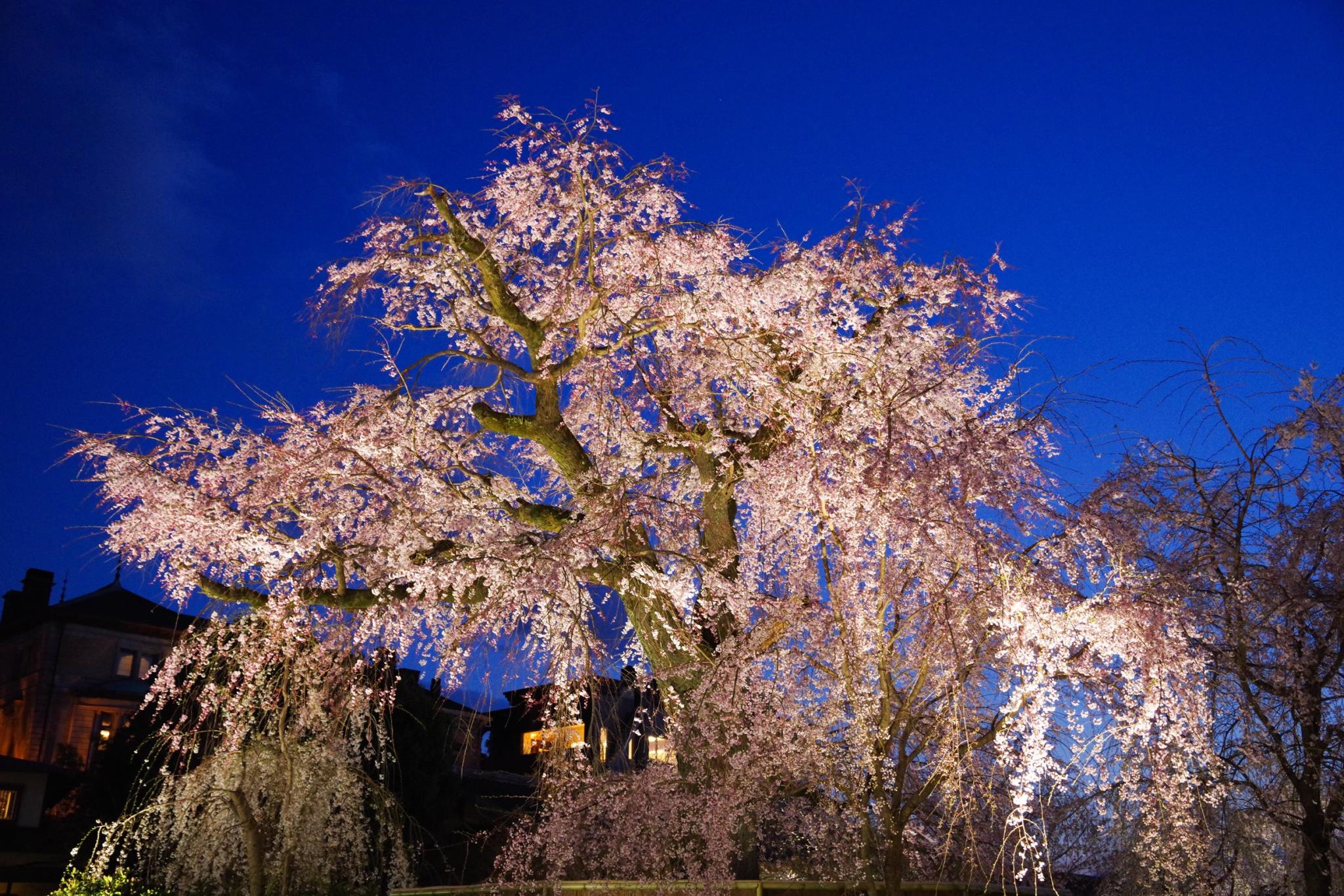 ライトブルーにライトアップされたしだれ桜が素敵ですよ