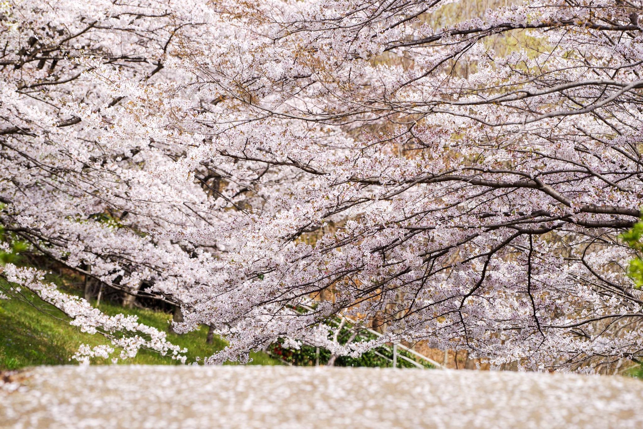 この頃は散り始めでしたが、道に花びらが舞っているのも綺麗です。